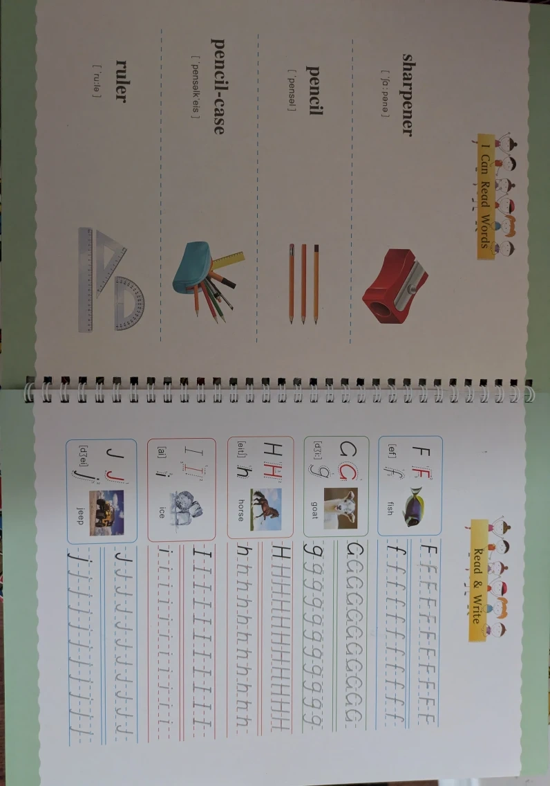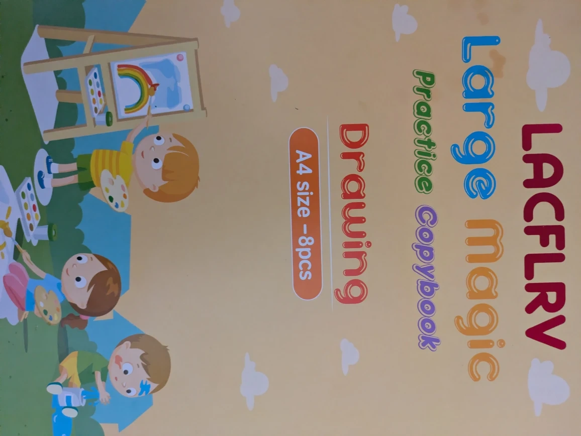 This is an 8-piece set of A4-sized large magic practice copybooks for numbers and alphabets. They're designed to help kids with handwriting practice and learning basic concepts. Perfect for young children just starting to learn their letters and numbers!