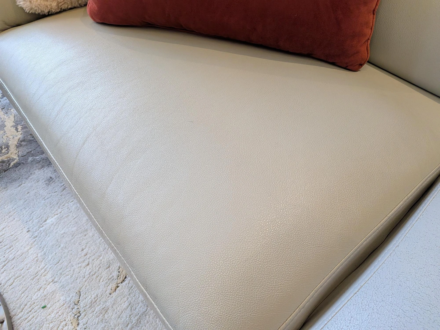 Leather. Grey color. No visible Stains.