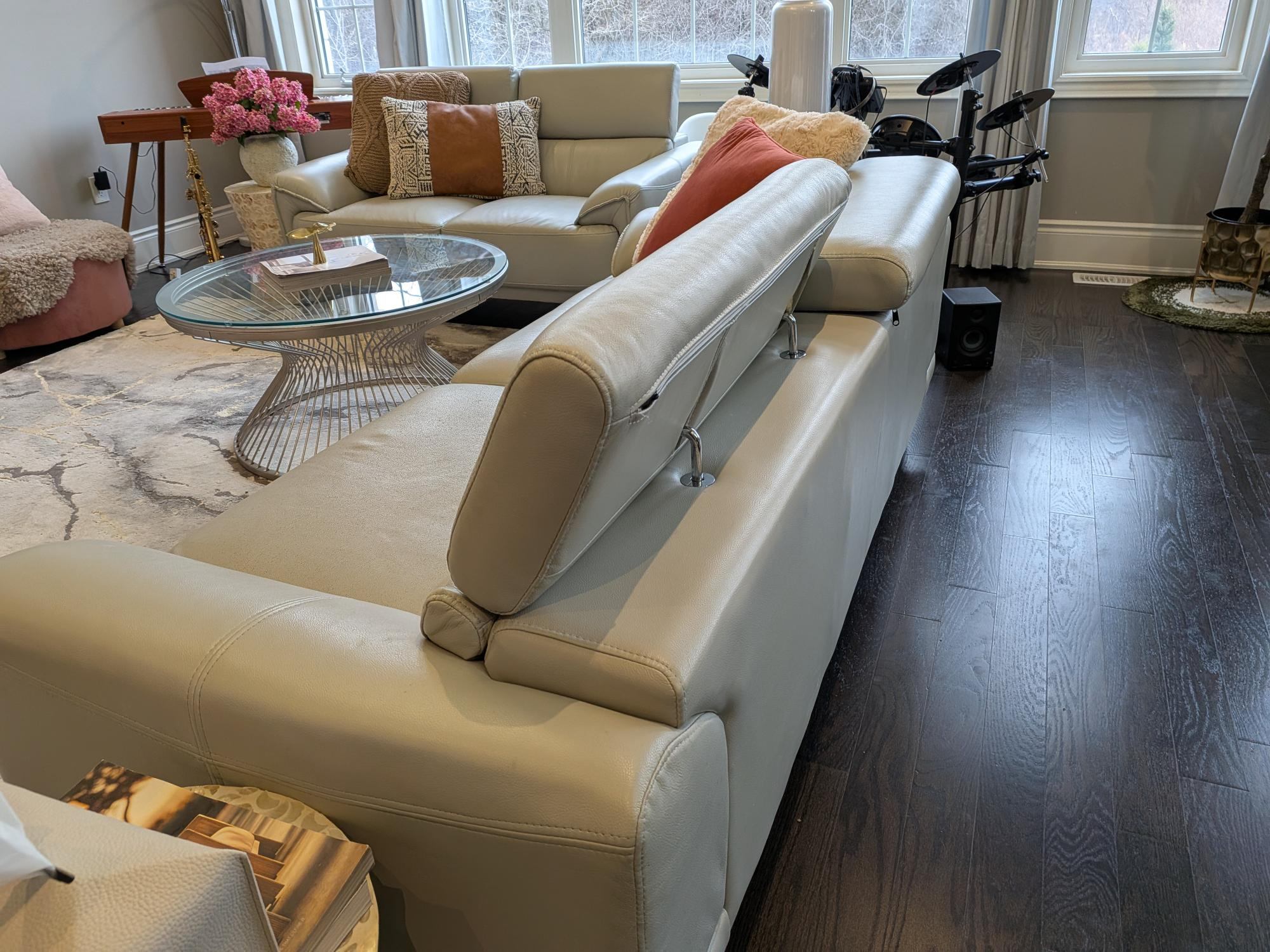 Grey Leather Sofa Set. Two + Three. Modern, 4 years old.
