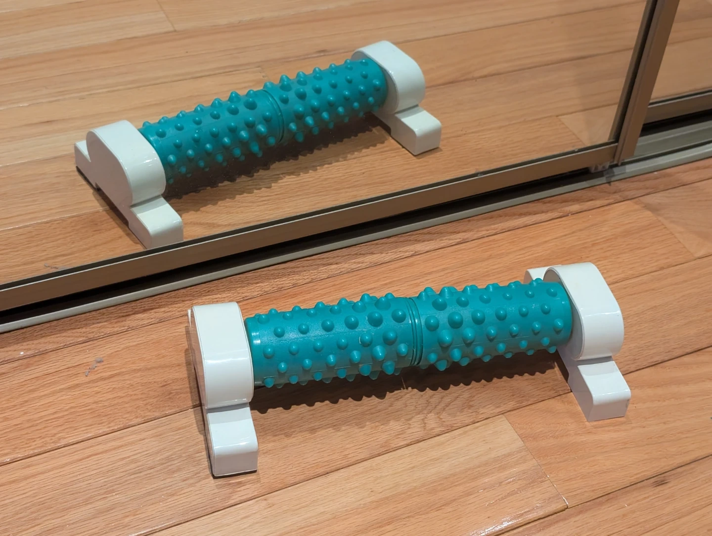 This foot roller massager is designed to soothe tired feet. It features a textured roller for deep tissue massage. Great for post-workout recovery or a daily foot treat!