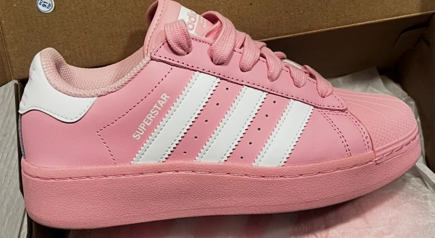 Selling a pair of Adidas Superstar shoes in a lovely pink colour! They're in great shape and ready for a new adventure. The classic design and comfortable fit make them perfect for everyday wear. Comes with the original box!
