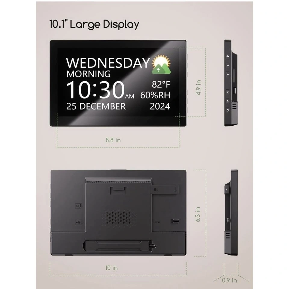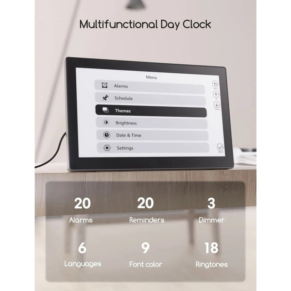 Condition: very light invisible scratches on screen, in excellent condition overall. Raynic 10.1” Digital Calendar Clock – Dementia & Alzheimer Clock for Seniors with Date and Time. 20 Alarms & 20 Reminders, 12 Themes, 6 Language, Auto Dimming, Indoor Temp for Bedroom, Wall, Gift.