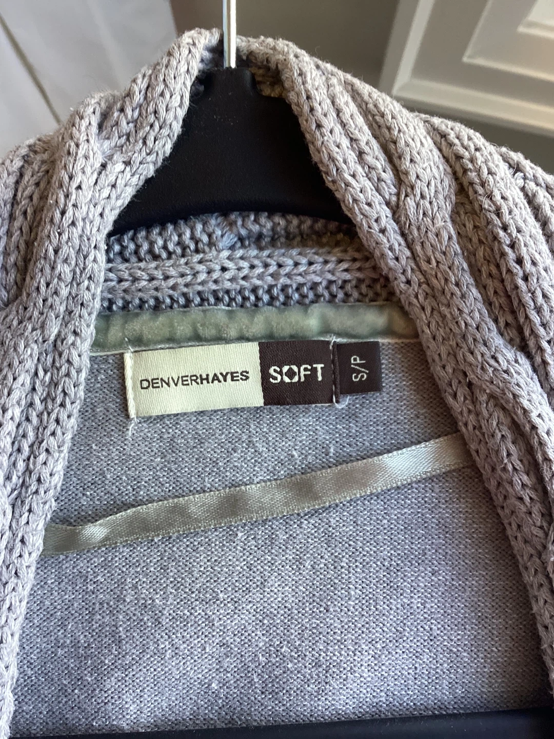 Denver Hayes Grey Cardigan, quality brand, minor signs of wear, size Small, Cotton/Nylon blend, $12 or best offer.