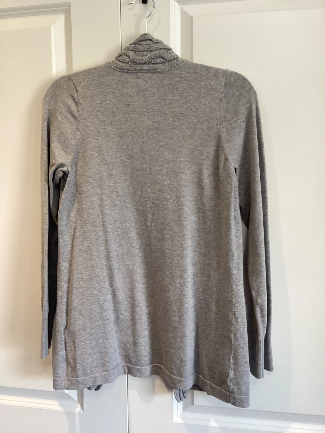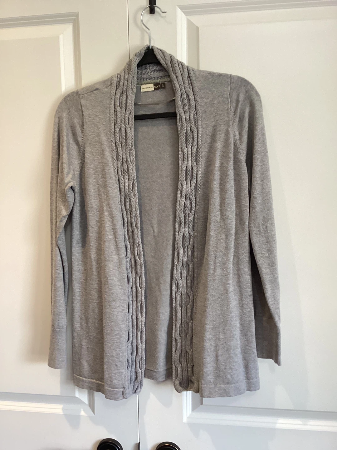 Denver Hayes Grey Cardigan, quality brand, minor signs of wear, size Small, Cotton/Nylon blend, $12 or best offer.