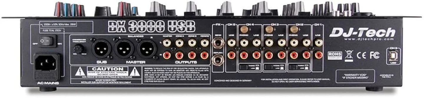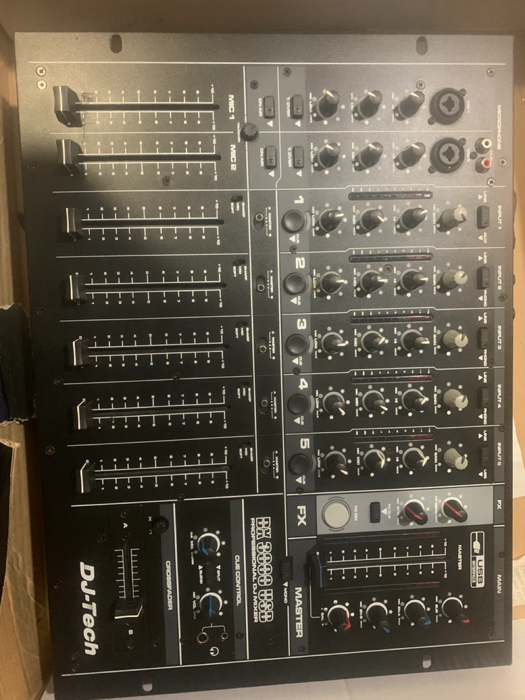 Selling a DJ-Tech DX 3000 USB mixer. It's in good condition and ready for your next gig or home setup. It has multiple channels and outputs for versatile connectivity