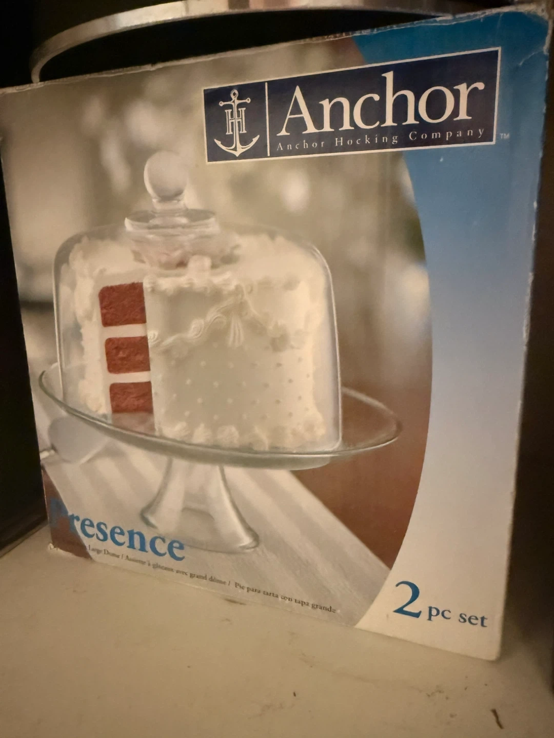 Selling an Anchor Hocking Presence cake dome set. It's a 2-piece set and includes the dome and the base. Perfect for displaying your baked goods! The box is included. Used it once or twice. Pickup only,