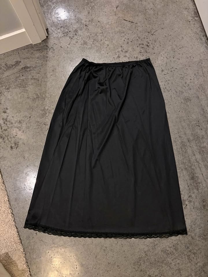 This skirt is well loved and ready for a new home. It has pretty lace detailing on the hem and fits at a maxi length. The elasticated waistband makes sizing flexible, fitting approximately an extra small to medium depending on the rise. From a cat-friendly, non-smoking home. Pick up in Hastings Sunrise or Kitsilano only.