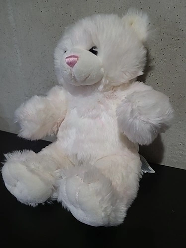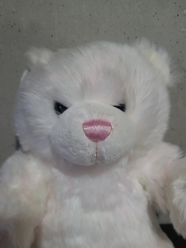 Crafted with the utmost care, this charming 15-inch Build-A-Bear Workshop Cuddles White Teddy Bear is a delightful addition to any collection. Featuring a soft pink nose and a delightful bear color combination of pink and white, this plush bear boasts a friendly expression with brown and black eyes that bring a touch of life to its classic design. Whether you're celebrating an occasion or simply looking to bring a smile to someone's face, this retired teddy bear from the year 2005 is perfect for all occasions. Made from high-quality plush material, it stands approximately 15 inches tall and 12 inches wide, making it a cuddly companion for bear enthusiasts of all ages.
