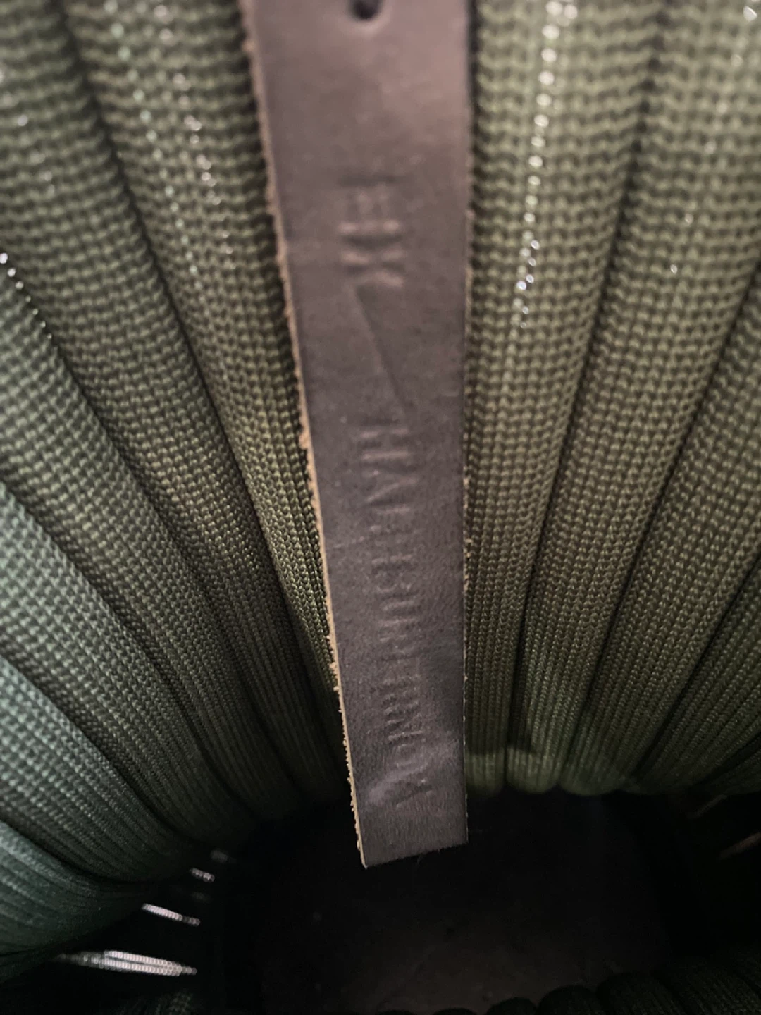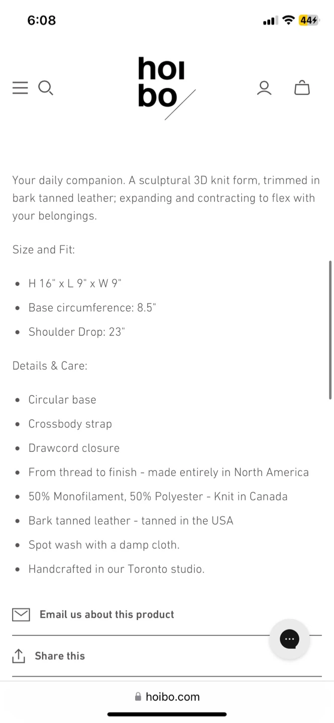 * Note - Photos from Hoi Bo site for reference only, show newer version in different colour with leather drawcord closure.