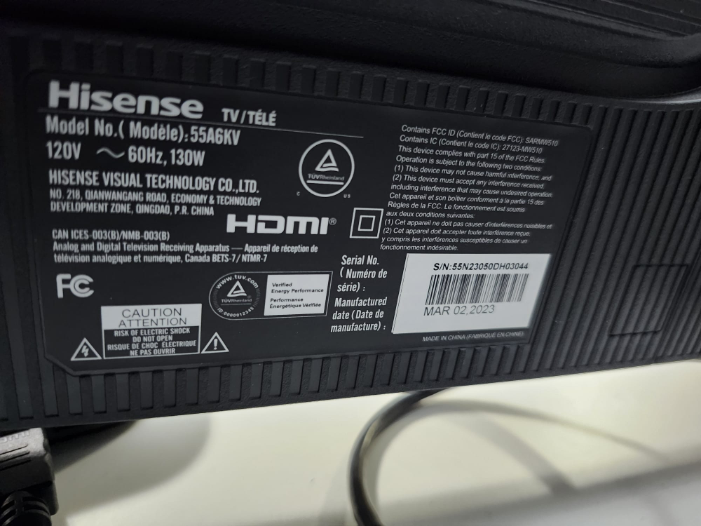 Selling a Hisense 55" A6 Series 4K UHD Smart TV. It's in great condition and comes with the original box.