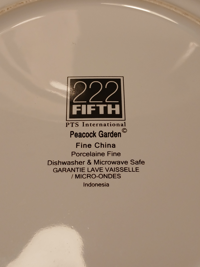 222 FIFTH, Peacock Garden Porcelain Dinner Plates (2). $15 for two, was $8 each