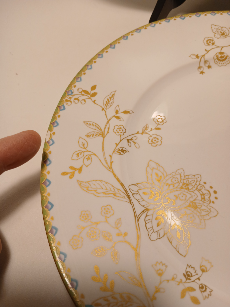 Plates are in beautiful condition (used once) except for one tiny chip on one plate as you can see in the last picture.