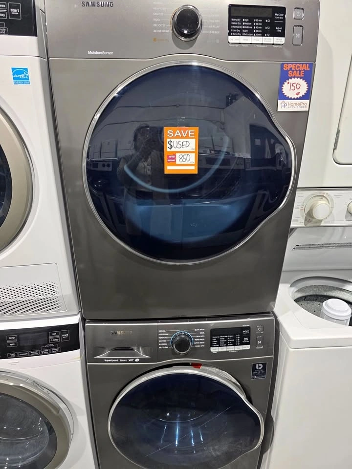 Upgrade your laundry setup with this Samsung Washer & Dryer set in a sleek graphite finish. This matching, stackable pair is perfect for condos, townhomes, or laundry rooms where space matters. Details: Brand: Samsung Color: Graphite Stackable set (washer + dryer) Professionally serviced and fully tested Includes 30-day warranty for peace of mind. Clean, modern look with reliable performance. Pick Up: Surrey, near 148 St & 64 Ave. Price: $___ This is a dependable, high-quality set that’s ready to go — perfect for homeowners, rentals, or investment properties.