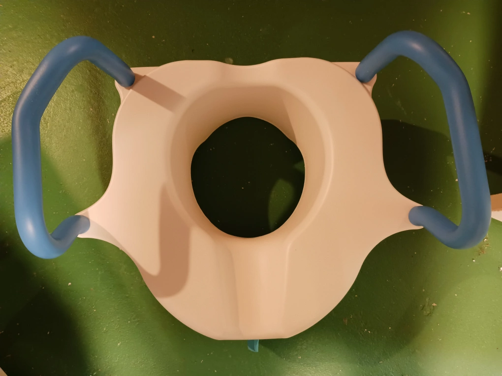 This raised toilet seat with handles was assembled but never used, so I'm giving it away. I can also provide the box it came in.