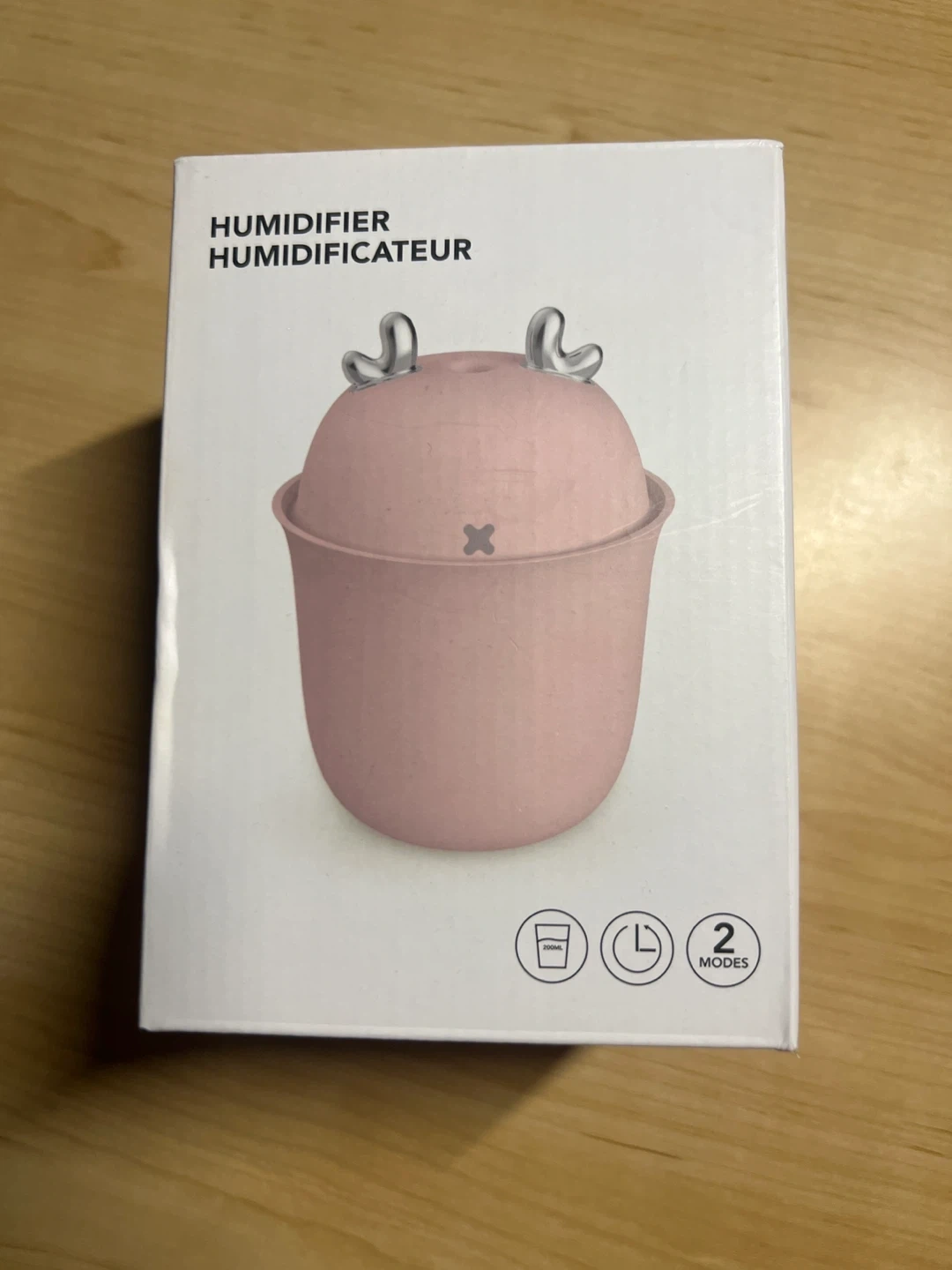 Adorable pink humidifier shaped like a cute character with deer antlers. It offers two different misting modes for customizable humidity levels. Great for adding a touch of charm and moisture to any small space!