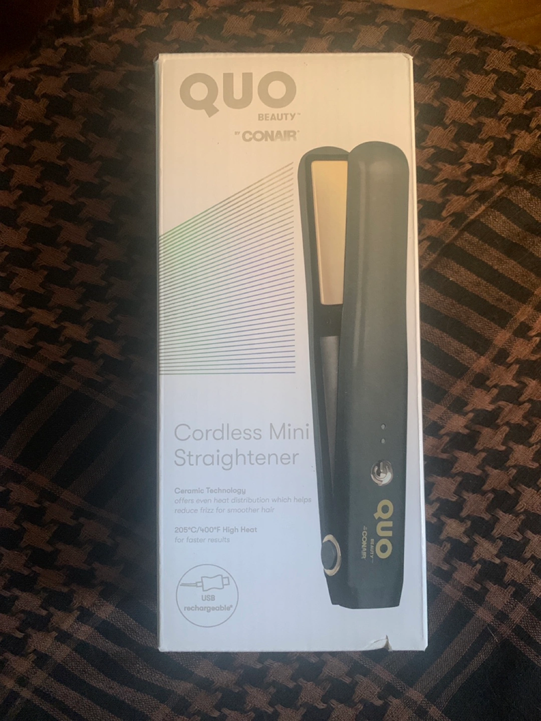 Selling a QUO cordless mini straightener! It has ceramic technology that offers even heat distribution, which helps reduce frizz for smoother hair. It heats up to 205°C/400°F for faster results. Plus, it's USB rechargeable
