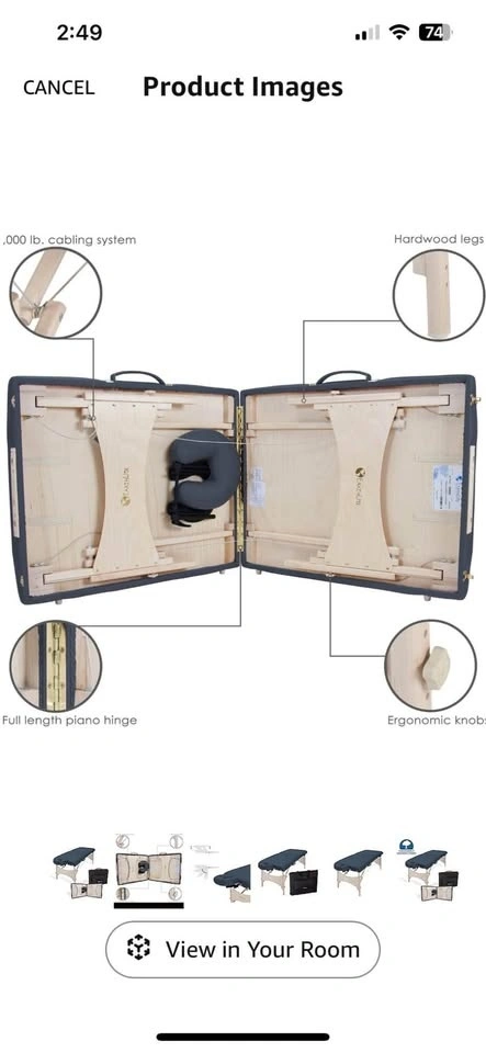 High quality professional massage table. Dimensions: 185.42 cm long x 76.2 cm wide x 83.82 cm high. Let me know if you're interested!