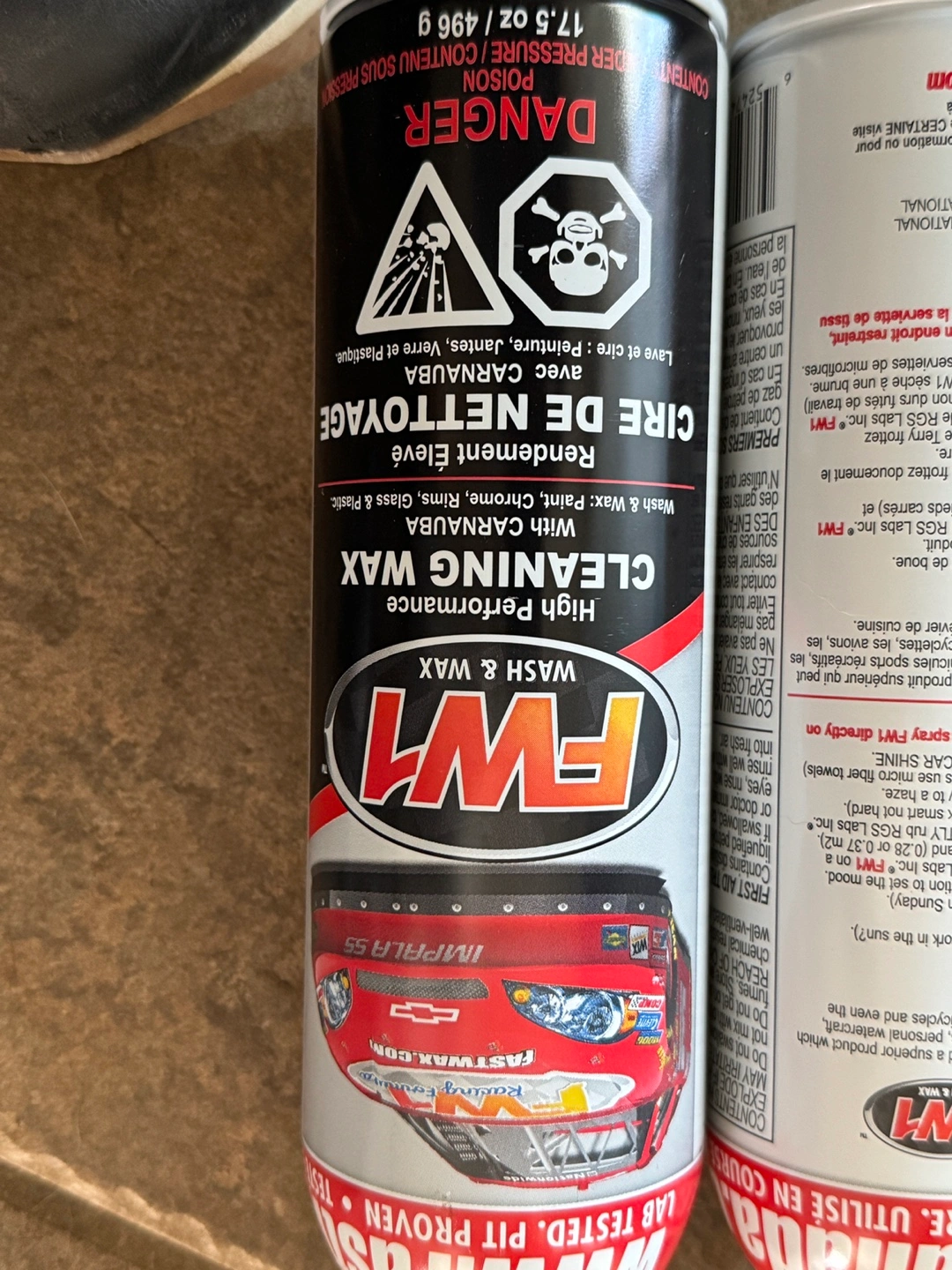 The FW1 WATERLESS WASH & WAX is a high-performance cleaning wax in an aerosol can. Clean and wax an average sized vehicle in under 30 minutes. And it lasts for about 6 - 8 weeks each time you apply it.