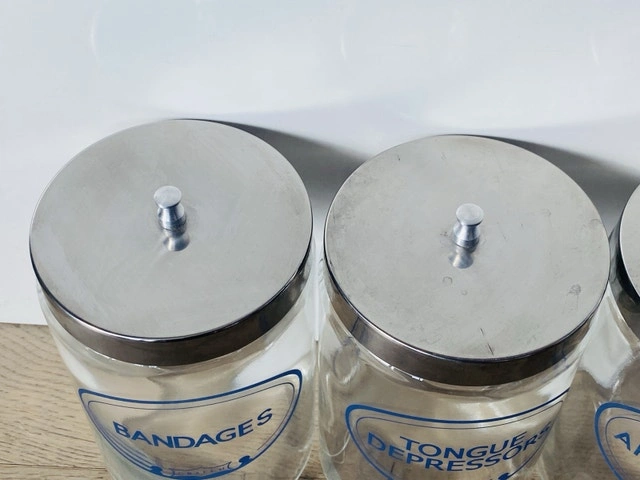 Vintage Medical Apothecary Doctor Glass Display Jars w/ Lids