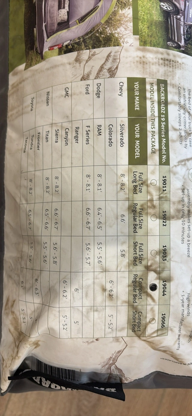 Truck tent for midsize pickups with regular bed (see dimensions in second picture).