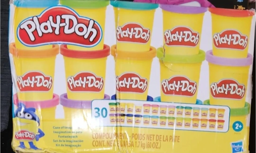 This is a Play-Doh Case of Imagination set. It includes 30 individual containers of Play-Doh compound. The total net weight is 1.7 kg (60 oz). Recommended for ages 2 and up! New in box. Box is damaged.
