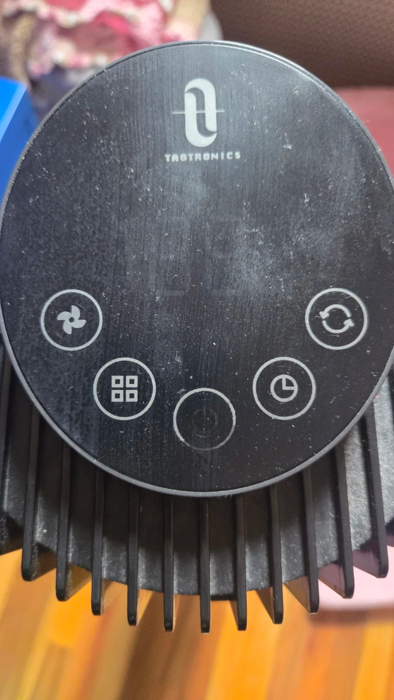 This is a TaoTronics tower fan. It has multiple speed settings and a timer function. It's a great way to keep your room cool!