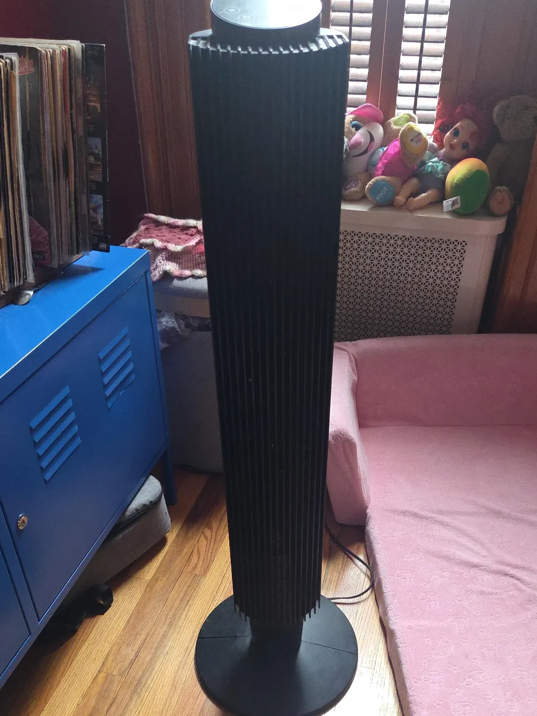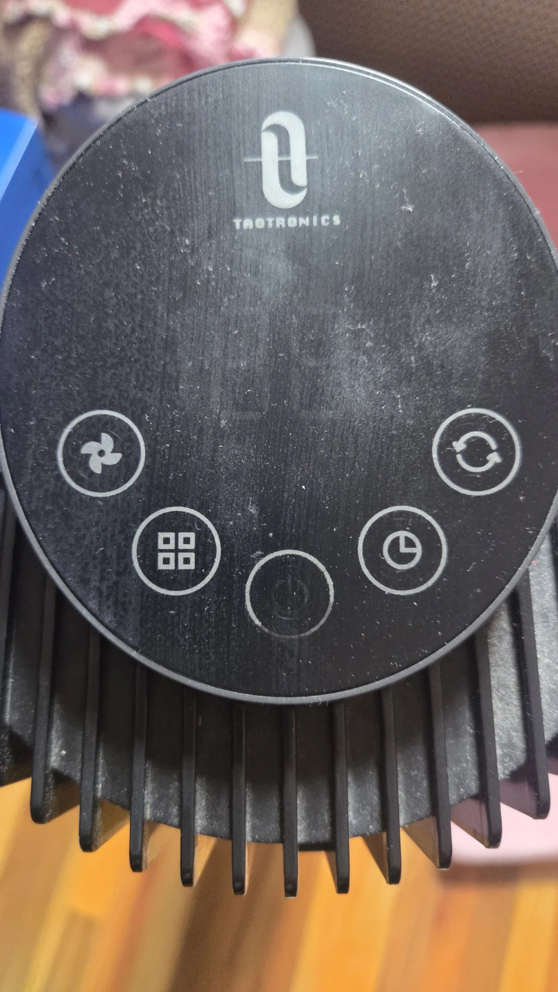 This is a TaoTronics tower fan. It has multiple speed settings and a timer function. It's a great way to keep your room cool!