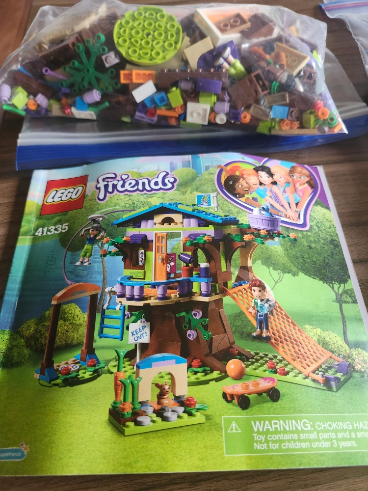 Selling a LEGO Friends set, model 41335, called Mia's Tree House. It comes with the instruction manual and all the pieces in a bag. This set is perfect for kids who love building and imaginative play