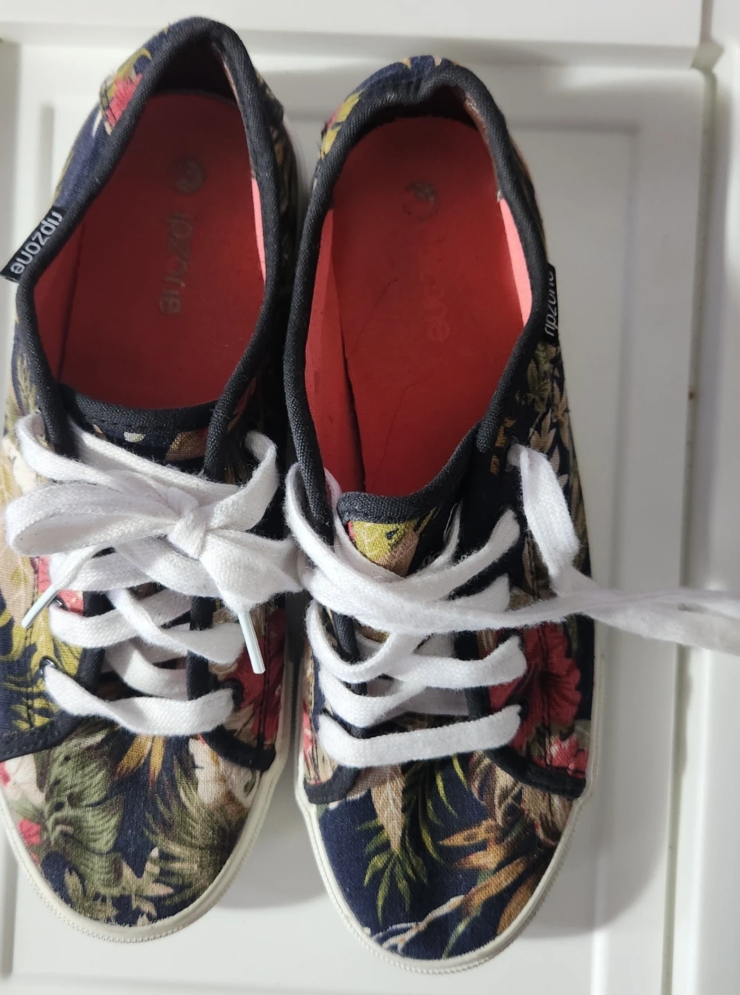 These Ripzone sneakers feature a vibrant floral print with white laces. They're made with a canvas upper and have a comfortable red insole. A great casual shoe for everyday wear!