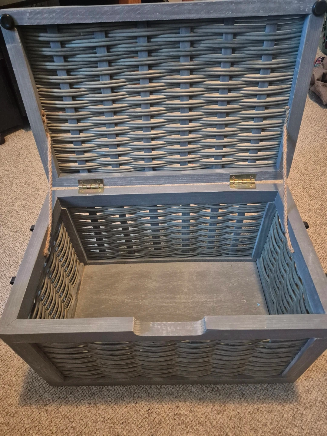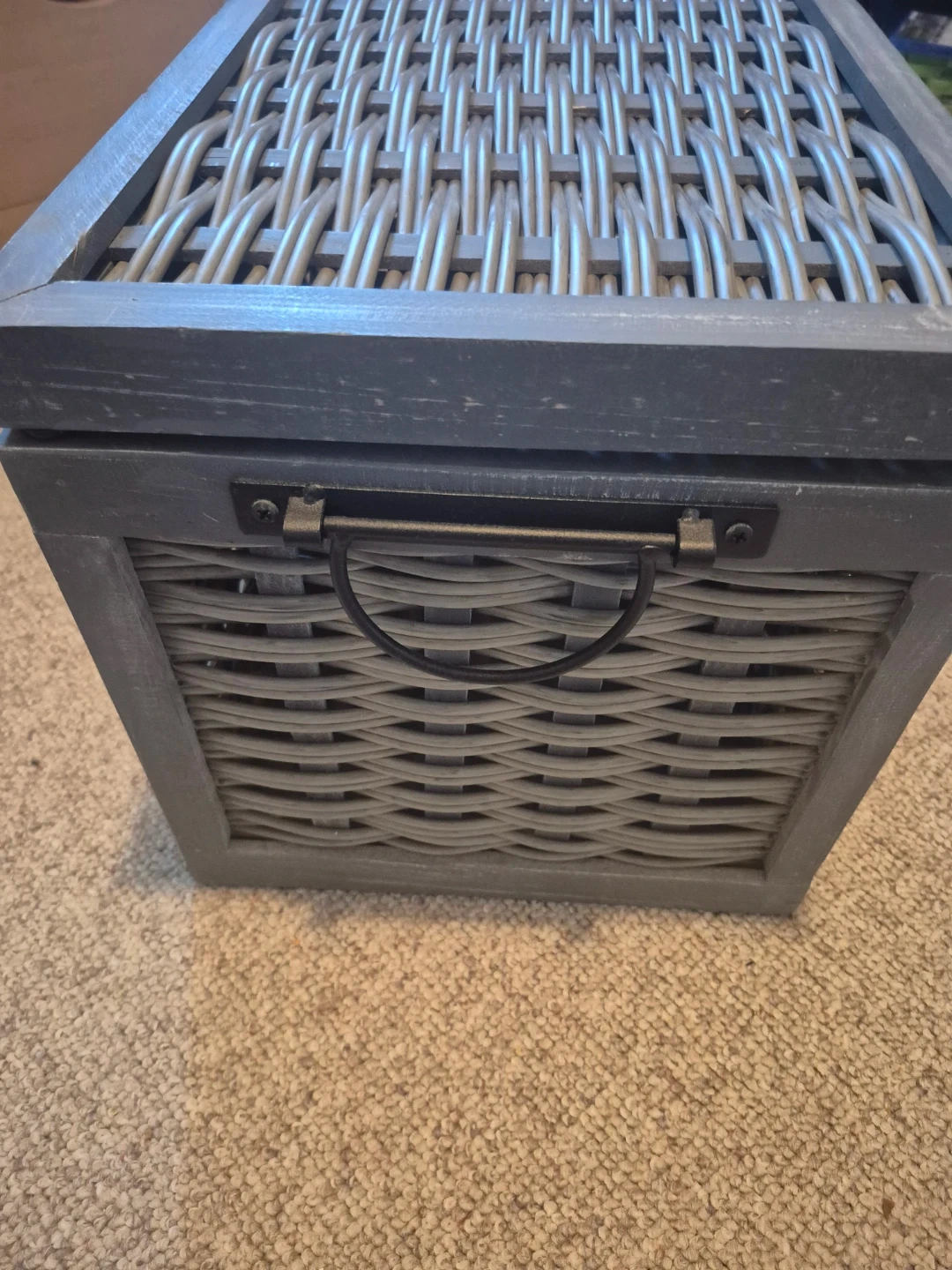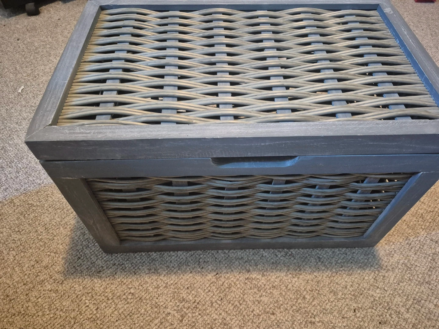 Buy & SellWicker Storage Trunk ChestWicker Storage Trunk Chest$20Grey wicker storage trunk with a hinged lid. It's made with a wooden frame and woven wicker. Features side handles and a rope hinge detail.ConditionLike newDimensions20 X 12 X 12 (inches)WHERE TO MEETMcIvor MallView MapSELLERverifiedMichaelValhalla1104 reviews0 chats·1 favorites·34 viewsSEND CHAT TO SELLERHi Michael! I’m interested in your listing.Hi Michael! I’m interested in your listing.Get the Karrot app to chatSign In to chat