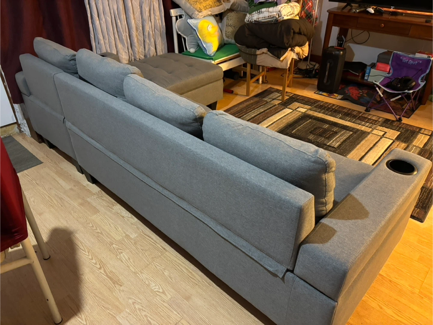 Grey Sectional Sofa with Cup Holders