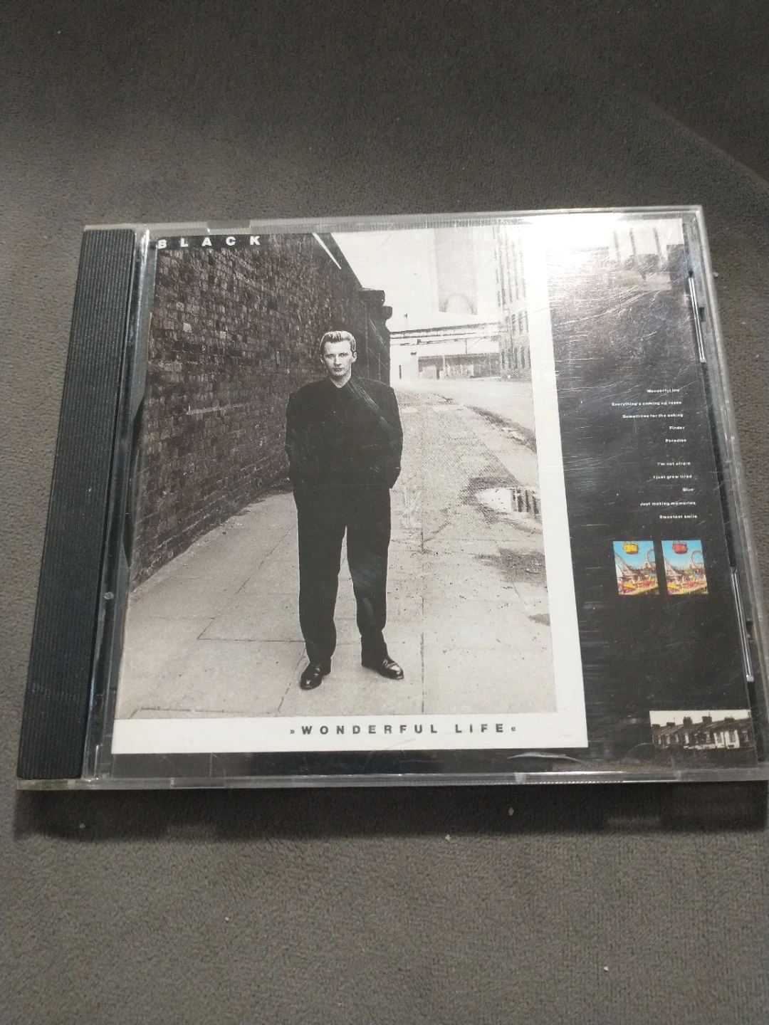 1987 Black CD Wonderful Life. CD has a few light scuffs but plaby perfectly. Scuffs on front of jewel case, scratches and small sticker on rear.