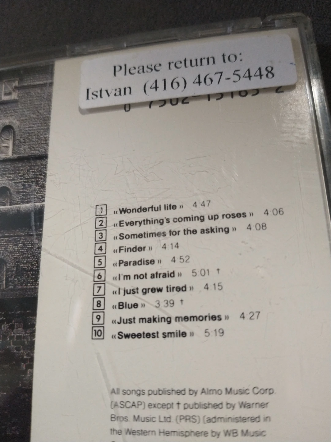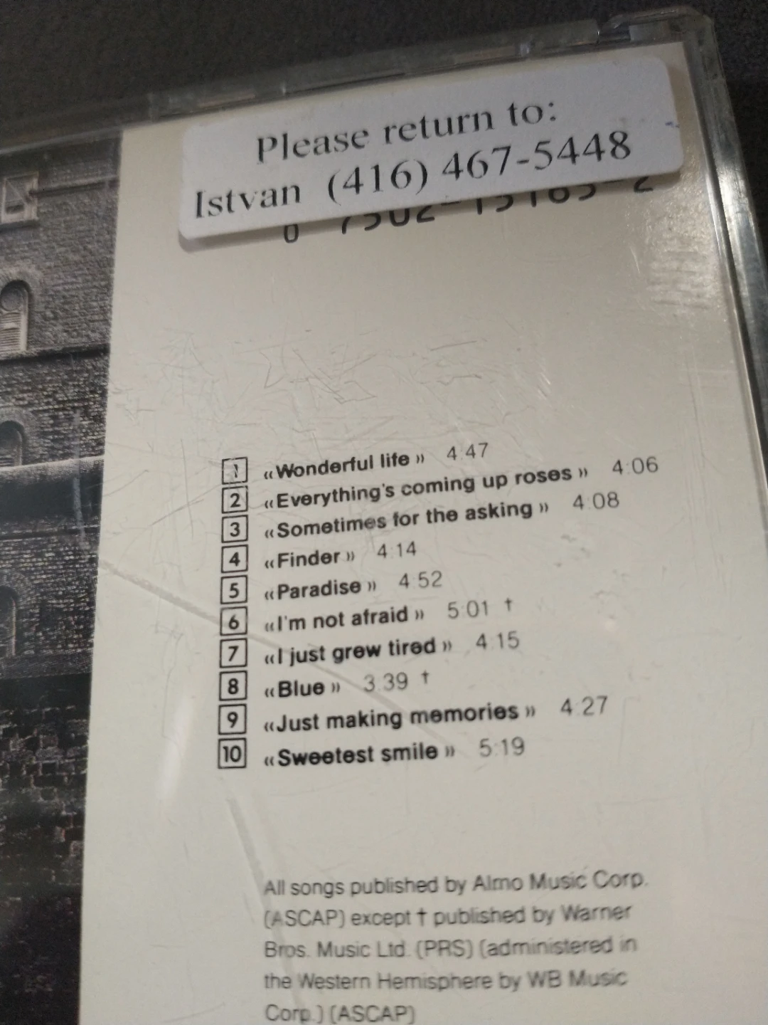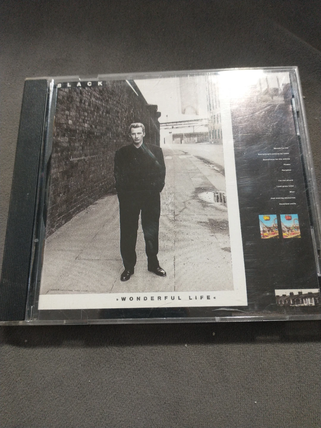1987 Black CD Wonderful Life. CD has a few light scuffs but plaby perfectly. Scuffs on front of jewel case, scratches and small sticker on rear.