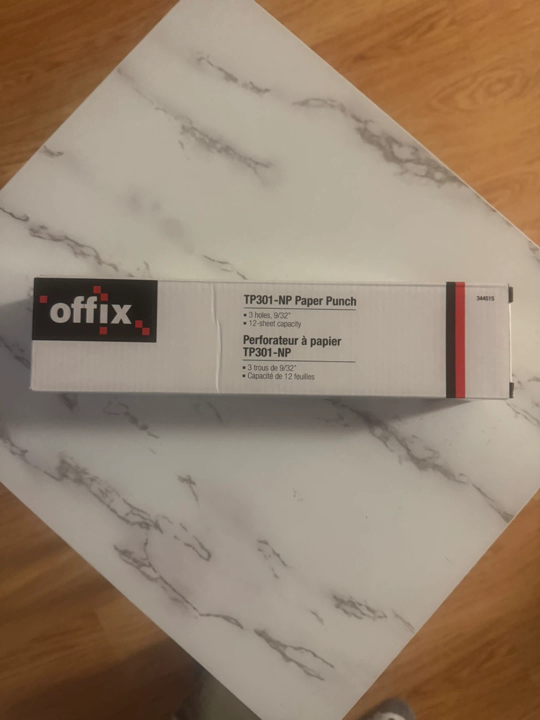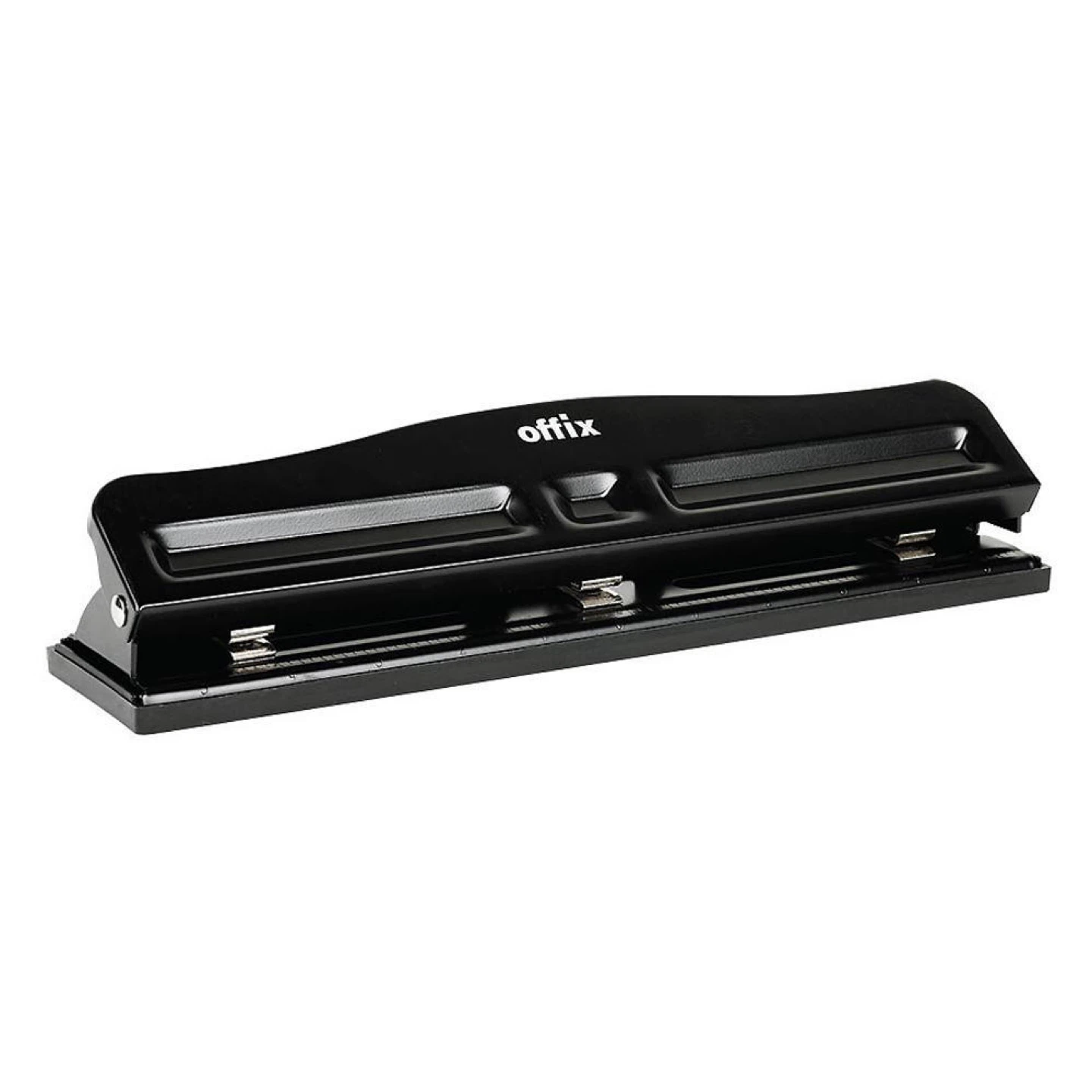 Offix TP301-NP paper punch. Punches 3 holes with 9/32" punch size. It's got a 12-sheet capacity. This punch is good for quickly organizing papers.