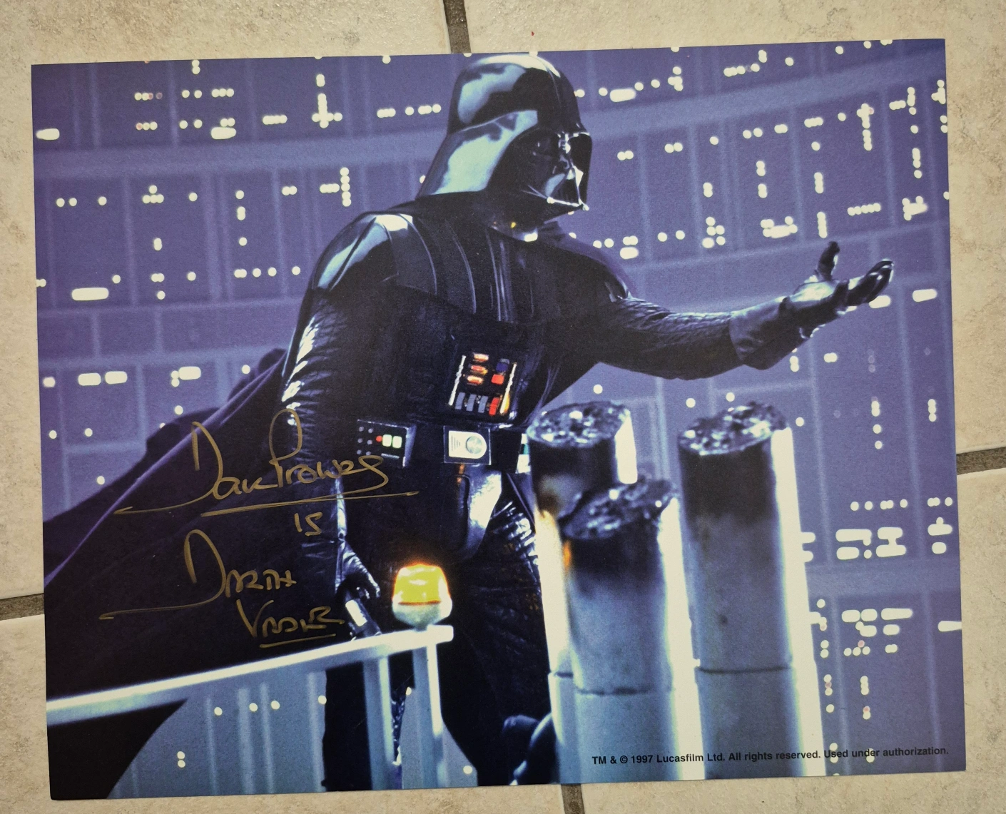 Autographed photo print featuring Darth Vader. Image of Vader in a Star Wars The Empire Strikes Back scene. Includes signature of Dave Prowse. 8x10