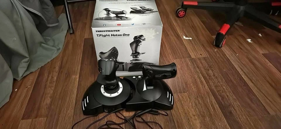 Thrustmaster T.Flight Hotas One flight stick and throttle system. Includes original box. Works with PC and Xbox for flight sims. Excellent condition, barely used.