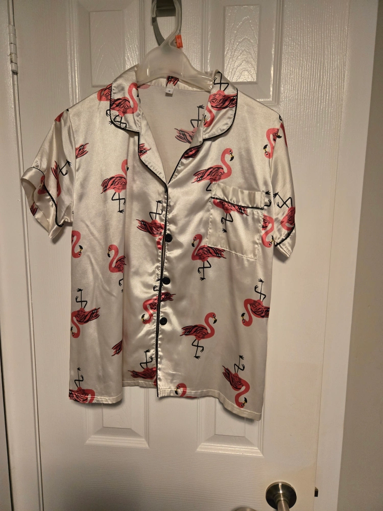 Pink Flamingo Satin Pajama Top
