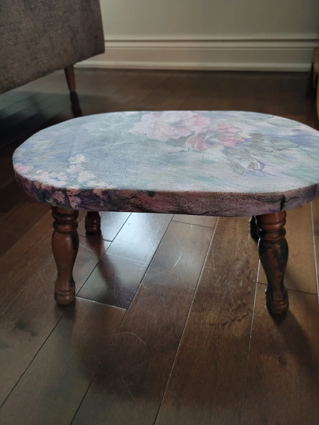 Vintage Floral Upholstered Wood Foot Stool.Step Stool.