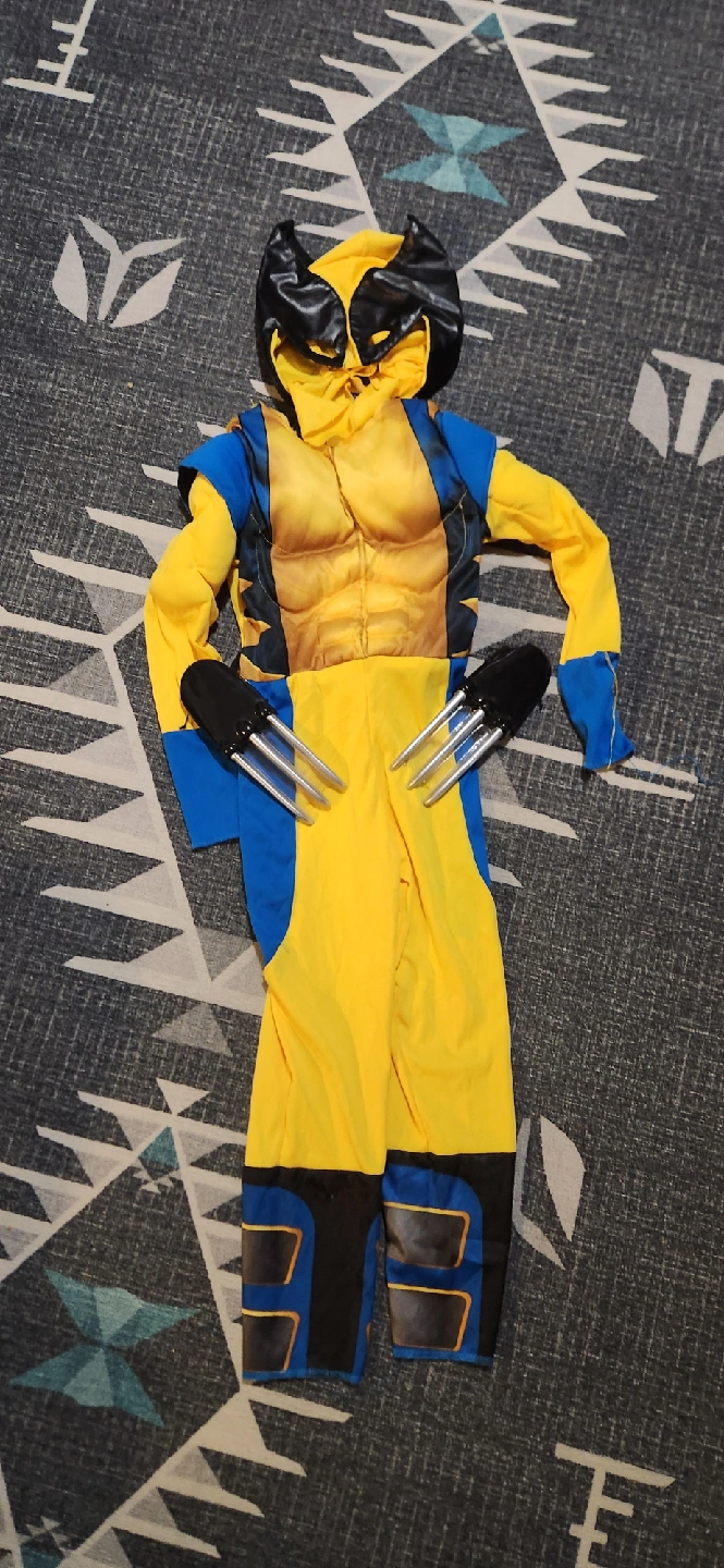 Selling a Wolverine costume. Kids size small or 4-6. The costume includes the mask and claws (slight crack on one of the claws as shown in picture).