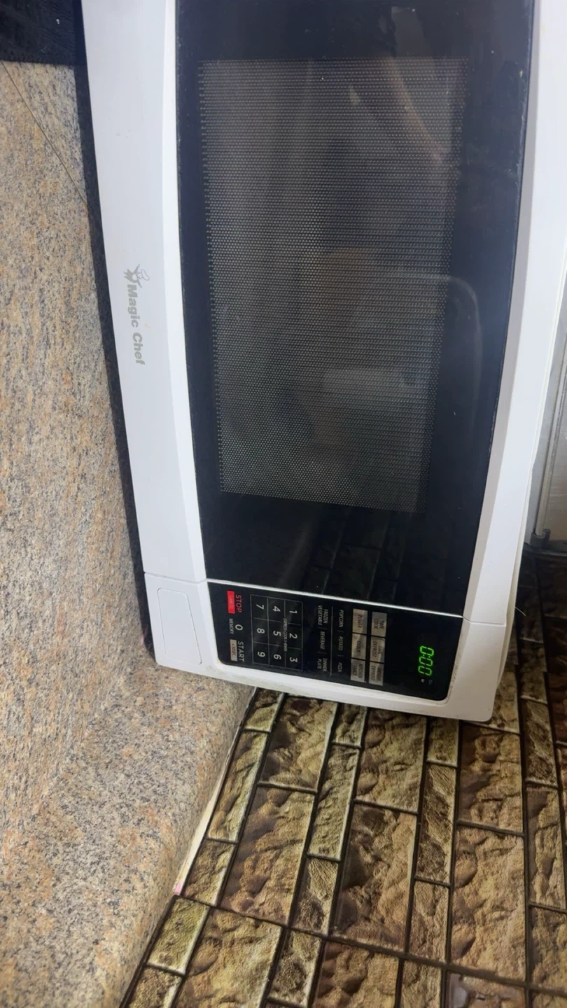 Magic Chef microwave in white. It's a functional countertop appliance. Perfect for reheating leftovers and quick meals!