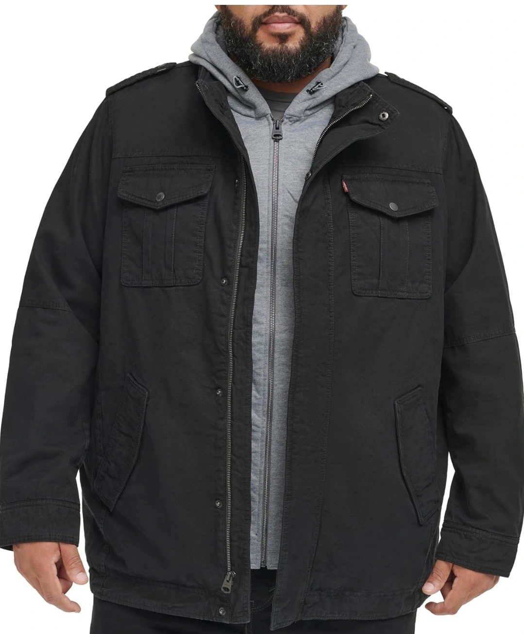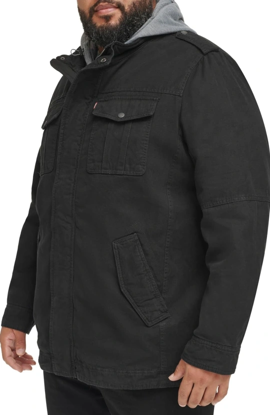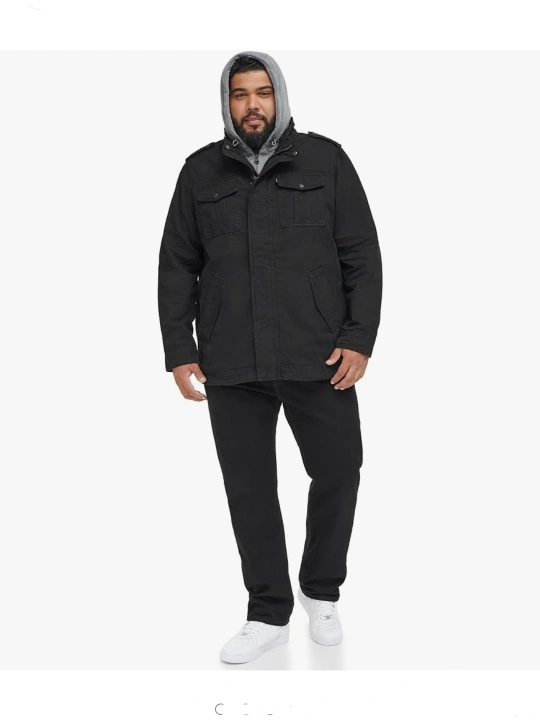 🔥 Levi’s Men’s Washed Cotton Military Jacket Hooded – Sherpa-Lined & Versatile! 🔥