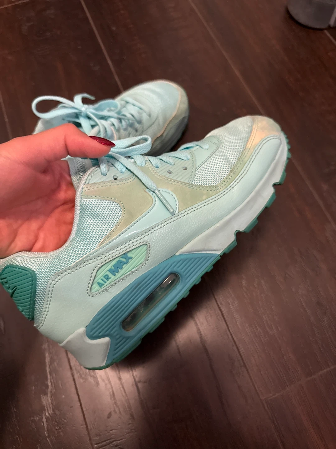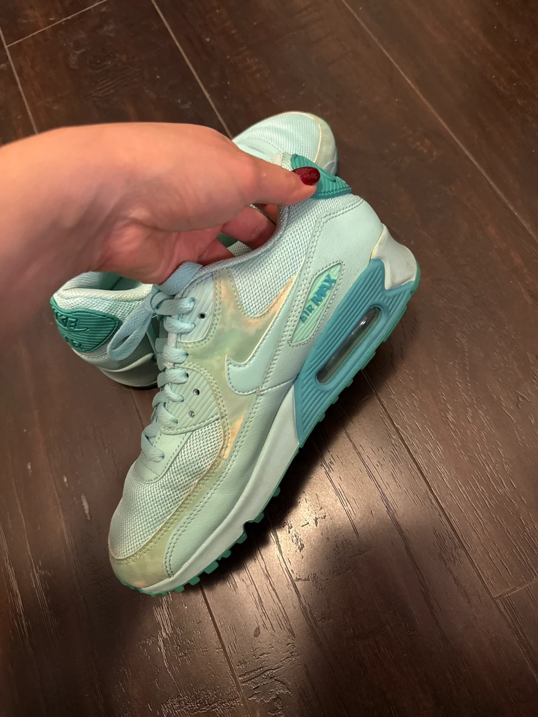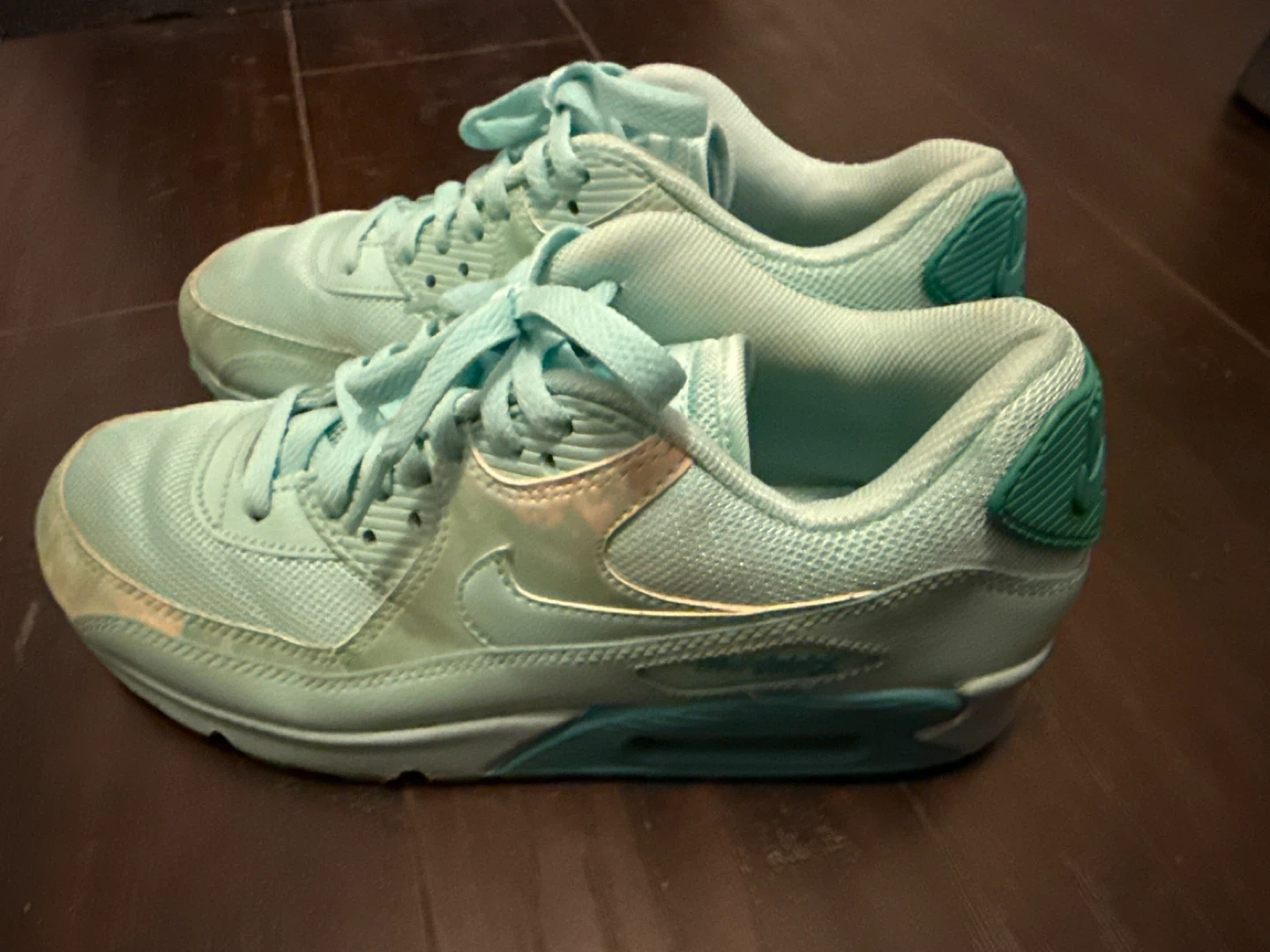 Selling a pair of Nike Air Max 90 sneakers in a lovely turquoise colour! They're in a very good condition, perfect for adding a pop of colour to your everyday outfits