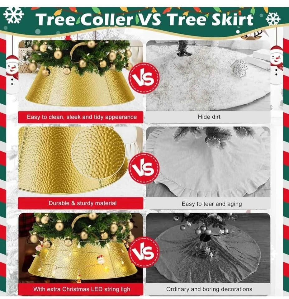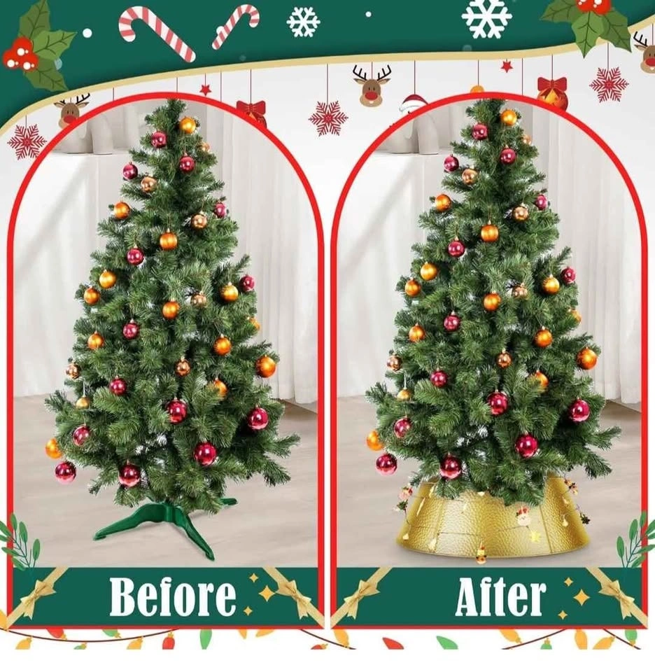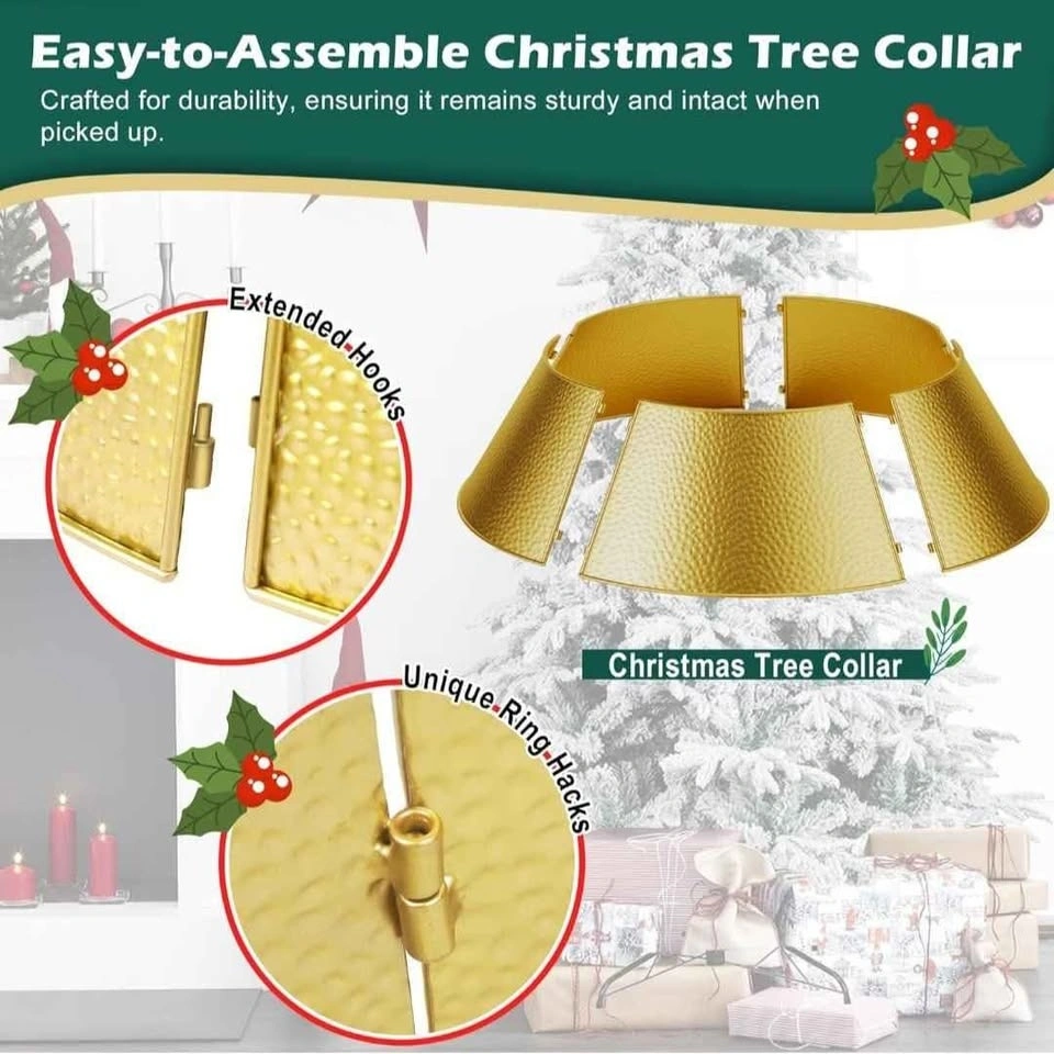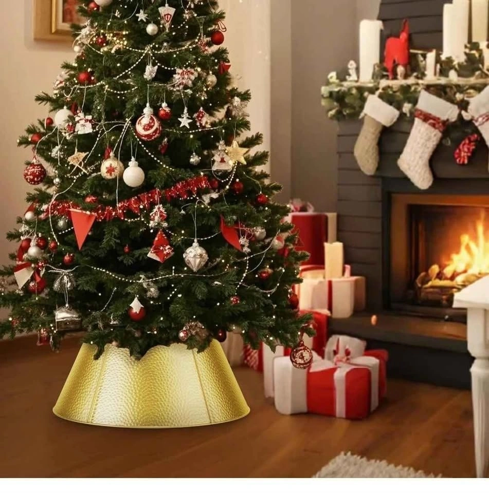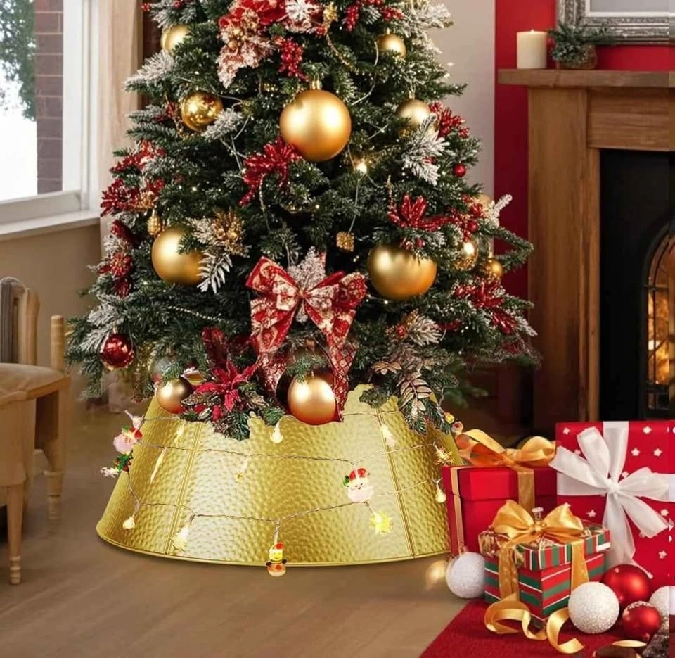 28" Christmas Tree Collar Metal Christmas Tree Collar Decoration Skirt Base Stand for Christmas Tree, Perfect for Christmas Tree Decoration - Golden
