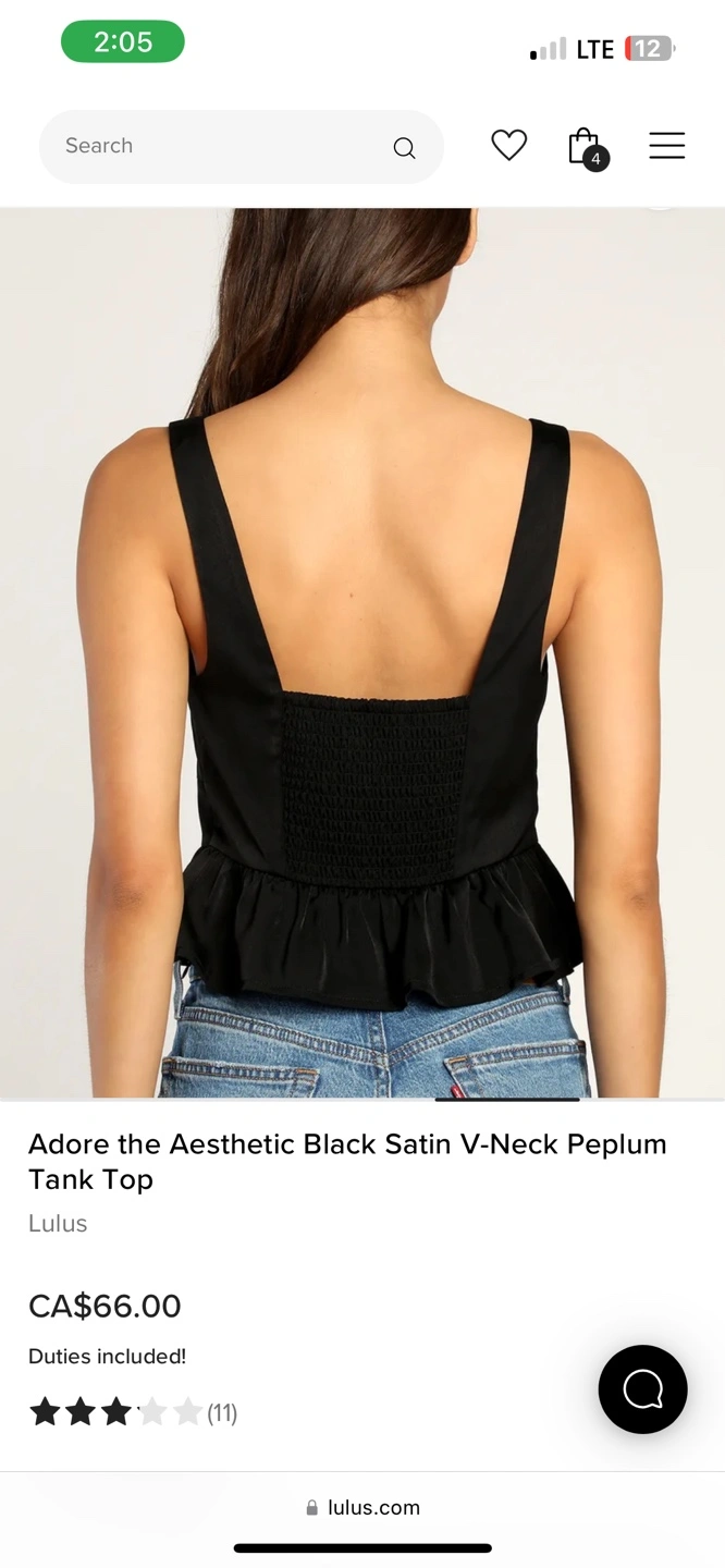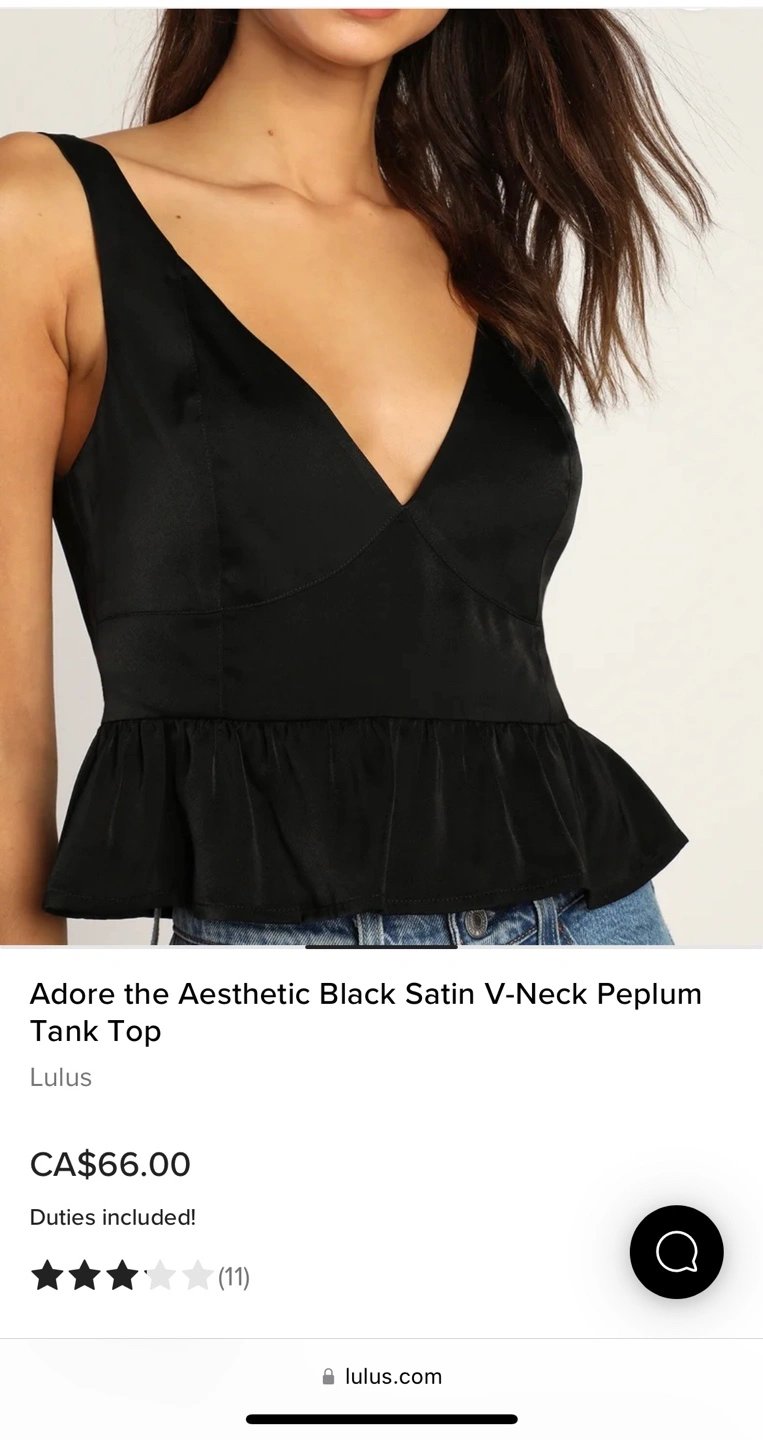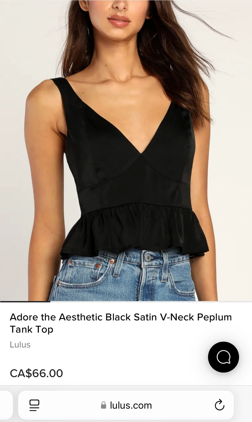 A beautiful black tank top. Features a deep V-neck. The bottom has a peplum design. I'm sure you'll love this piece when you wear it on your next date night.