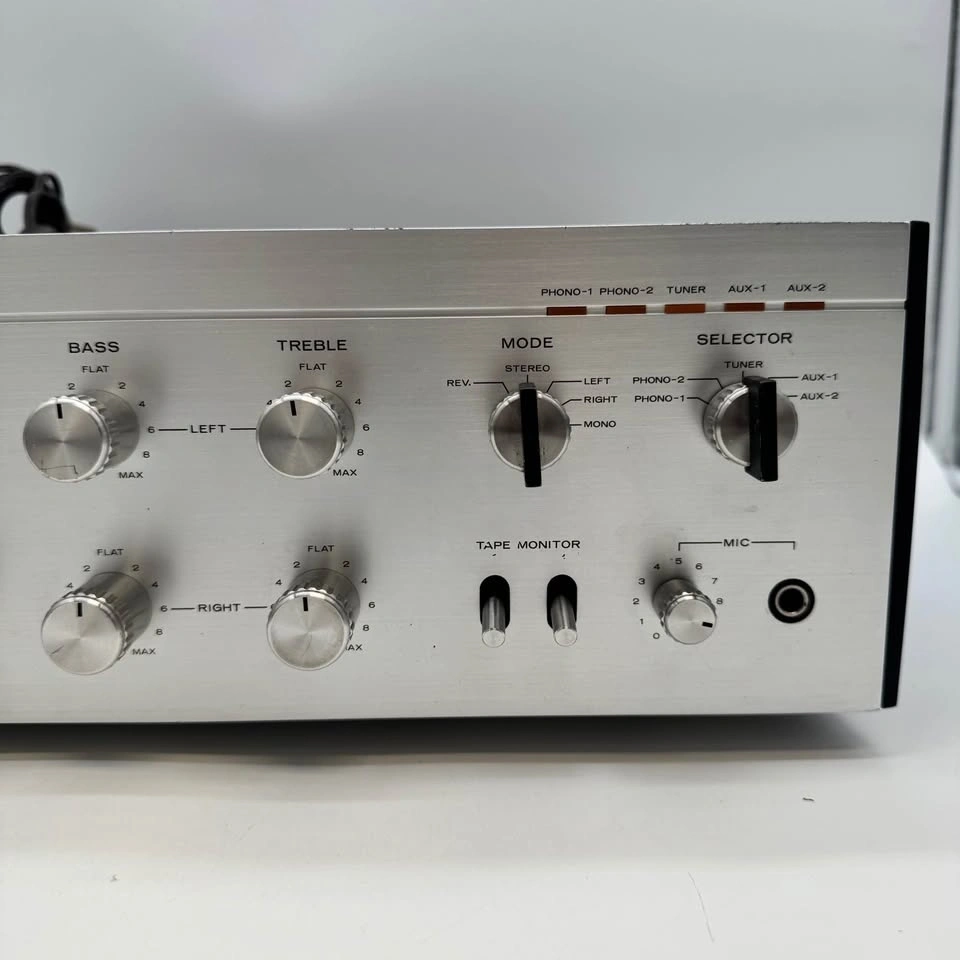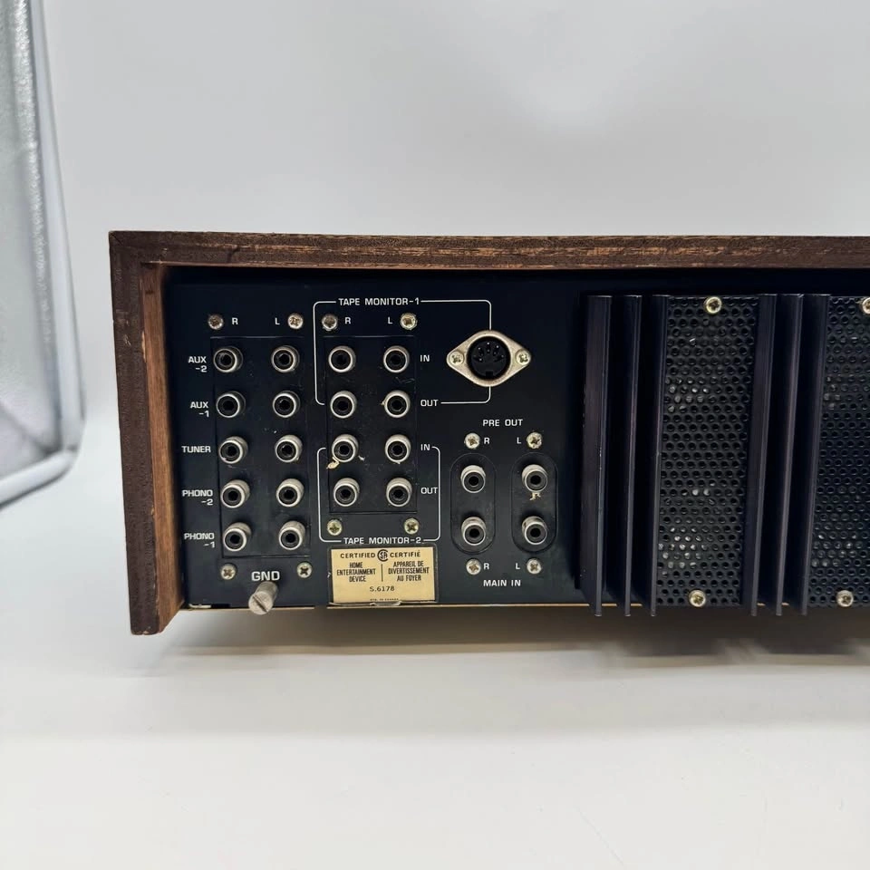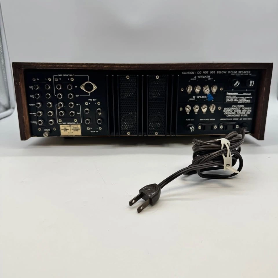 Classic mid-1970s solid-state integrated amplifier with a silver faceplate and real wood cabinet. Fully tested and working with great sound from both channels. Includes original operating manuals – a nice bonus for collectors.