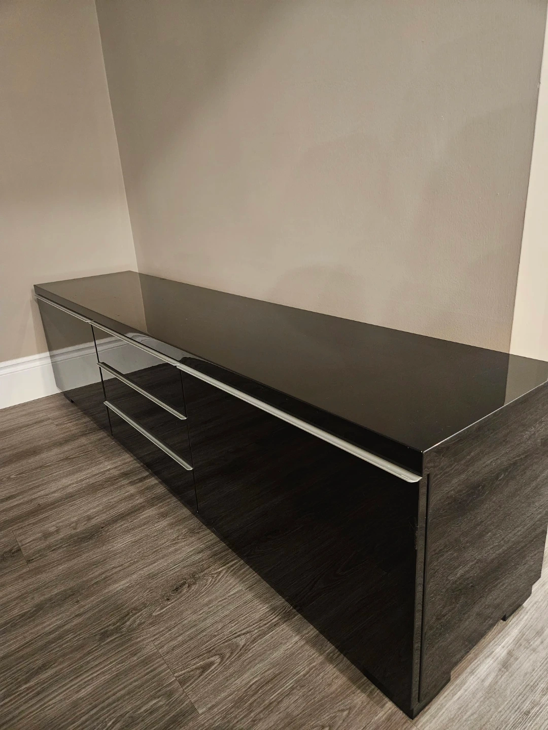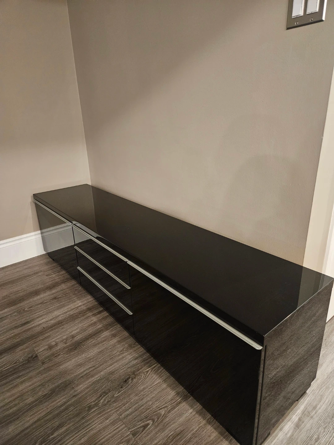 Sleek and modern IKEA BESTÅ BURS TV bench in high-gloss black. Excellent condition, no scratches!