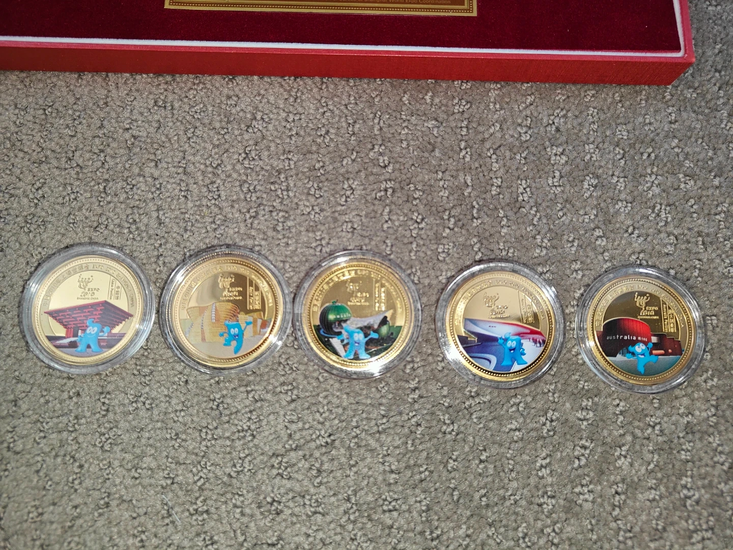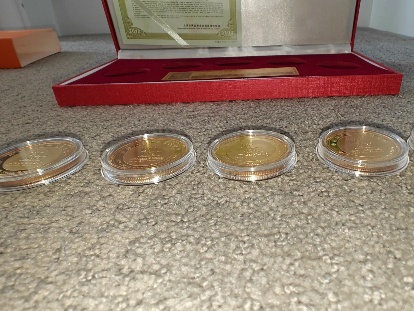 I am selling a Complete and Rare 2010 Shanghai World Expo Participating Nations' Pavilions Quinary Medallion Set with Certification Of Authenticity in new condition. Elevate your collection with this prestigious 2010 Shanghai World Expo Participating Nations' Pavilions Quinary Medallion Set. This officially licensed commemorative set (Product Code: P06257) was released in limited quantities to celebrate the "Better City, Better Life" global event.
