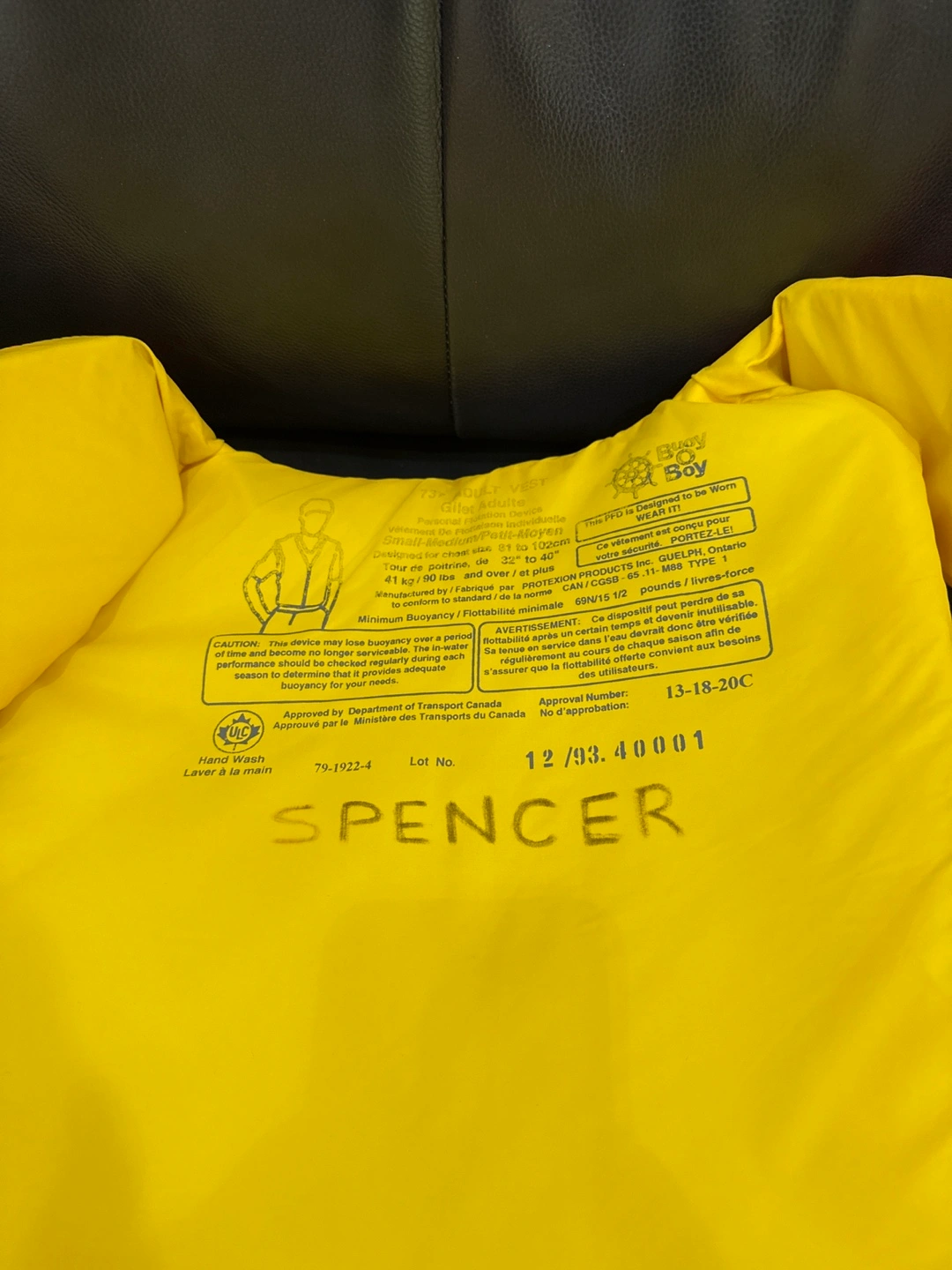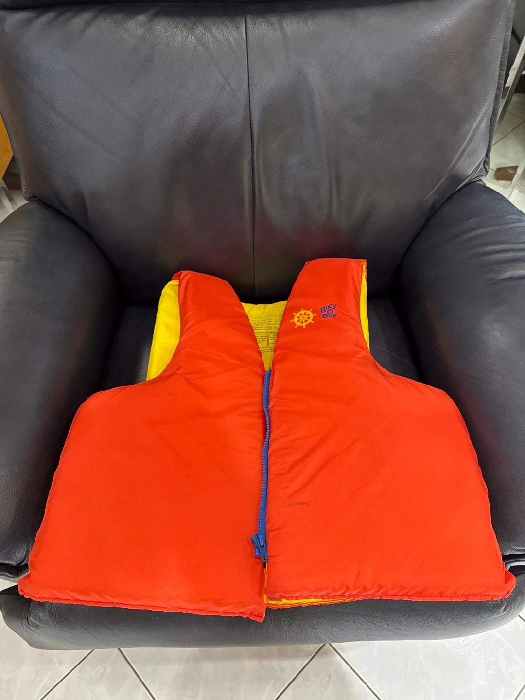 Selling a Buoy O Boy adult life jacket in orange. It's in excellent condition and ready for fun at the lake or pool!