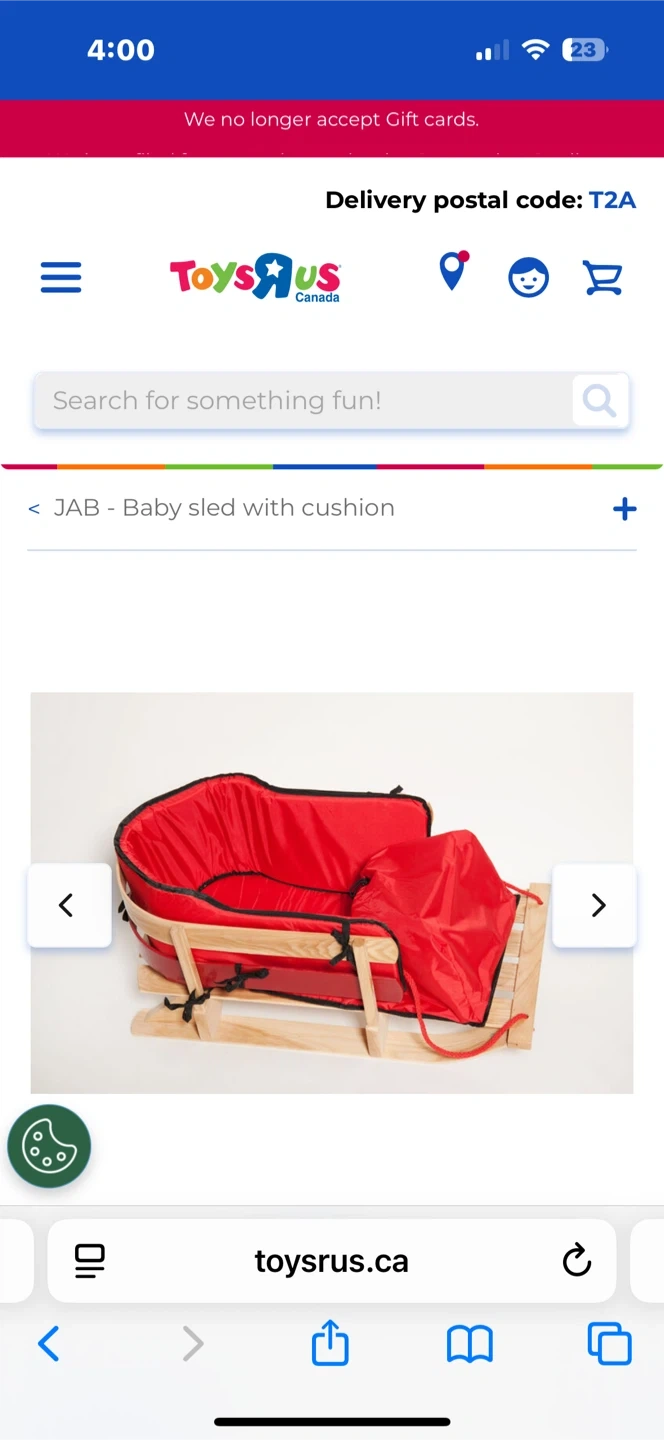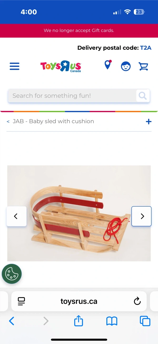 Buy & SellJAB Baby Sled with CushionJAB Baby Sled with Cushion$35This JAB baby sled is made of wood with a red fabric cushion. It's perfect for little ones to enjoy the snow. It was made in Canada on May 29, 2014.ConditionLike newAge1-2 yearsWHERE TO MEETCheck LocationView MapSELLERverifiedZ KMarlborough54744 reviews0 chats·0 favorites·3 viewsSEND CHAT TO SELLERHi Z K! I’m interested in your listing.Hi Z K! I’m interested in your listing.Get the Karrot app to chatSign In to chat
