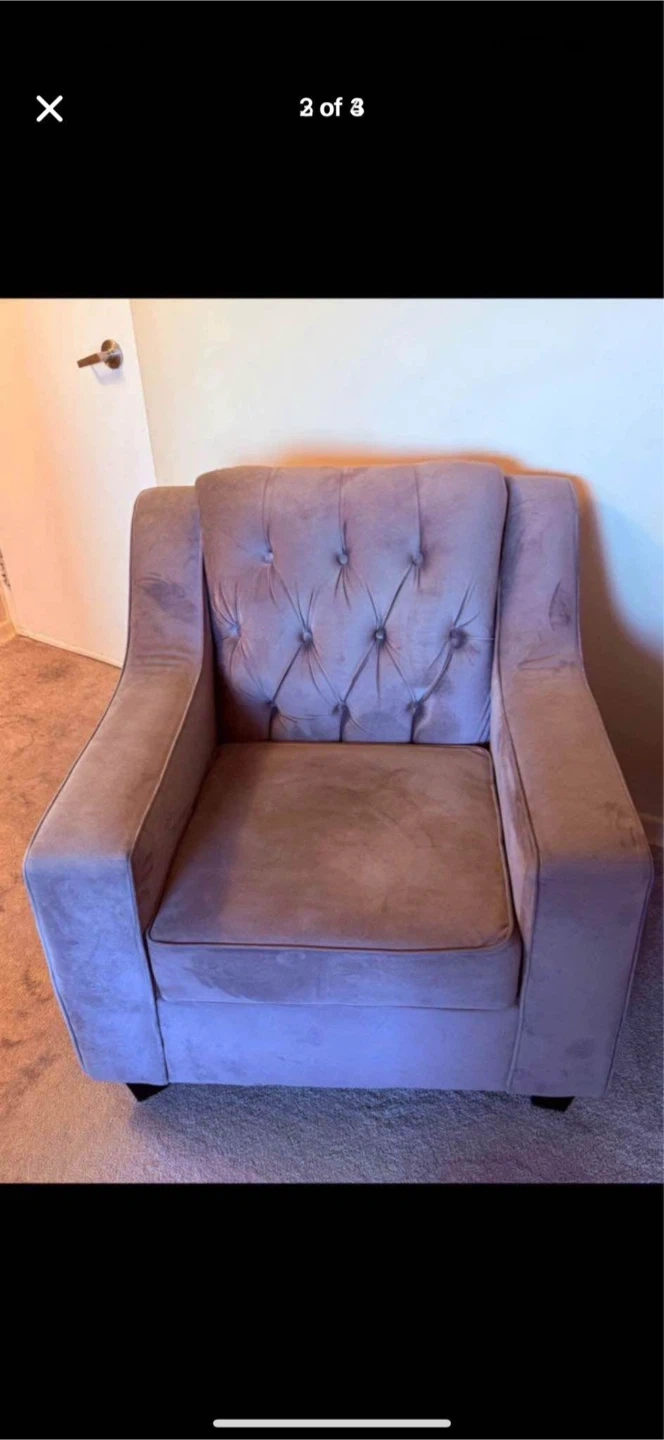 A stylish accent chair upholstered in soft velvet with elegant button tufting. It's perfect for adding a touch of comfort and sophistication to any room. The chair's compact size makes it versatile for smaller spaces.